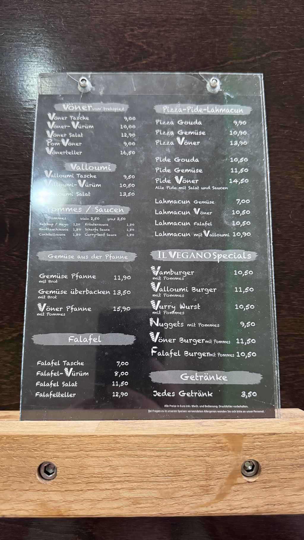 zwar teuer, aber sehr sehr geil und alles selbstgemacht. besonders empfehle ich den lahmacun vöner. da ist ganz viel tolles gemüse drin wie zb süßkartoffel usw ❤️ auch die soßen sind ganz ganz toll