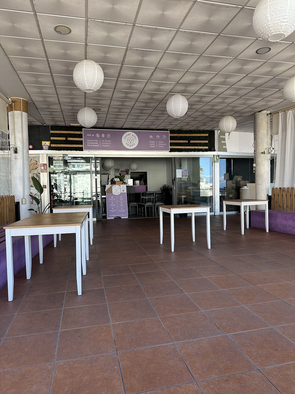 Fab cafe. All vegan. All made by owner. Had the flambé and lemon cheesecake, a juice with celery, apple, lemon. Also a great Americano. He had a falafel flatbread, chocolate cheesecake, beetroot / ginger juice. All wonderful. Salads and bowls looked great. Healthy , nutritious and delicious. The wee dog is cute too. Can’t fault it - although we were overheated walking from La caleta resulting in a very late lunch.