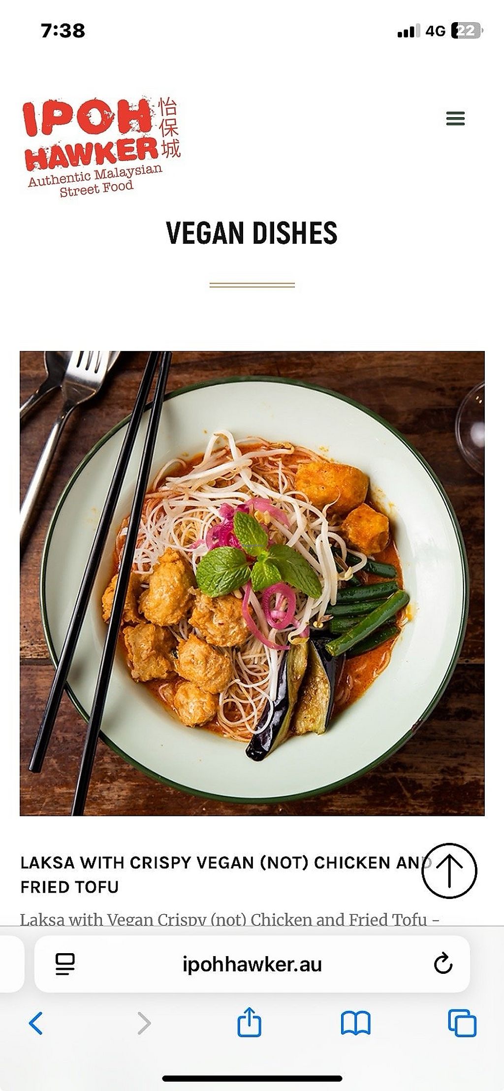 Vegan section of the menu with heaps of options, but look through the menu for other dishes that can also be made vegan (Eg the laksa)…yum!