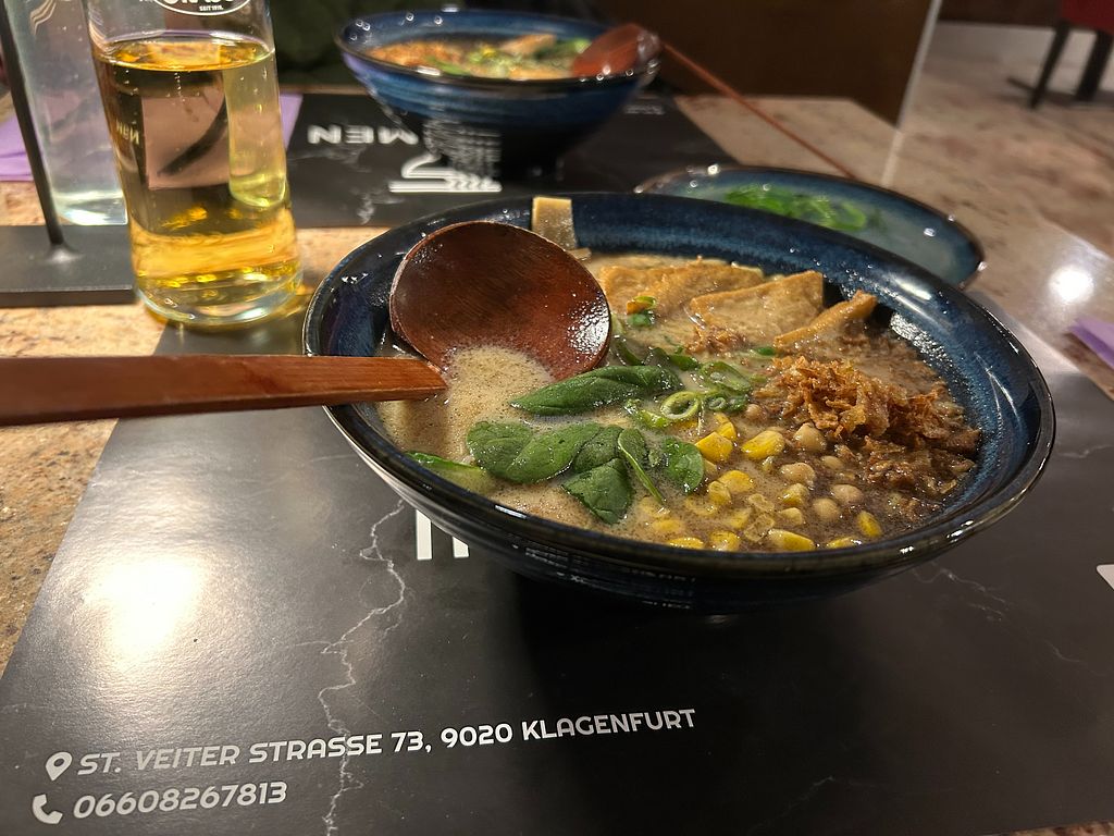 The staff are very friendly and were much more sensitive to veganism than is typical of restaurants here. While it's by no means a vegan or vegetarian restaurant, there are actual vegan options labelled as such. We really enjoyed the vegan ramen, wakame, gyoza, and the age tofu (forgot to take a picture of the tofu). None of it is of a quality you'd get in Tokyo, London, or New York, but such a nice option here in Kärnten.