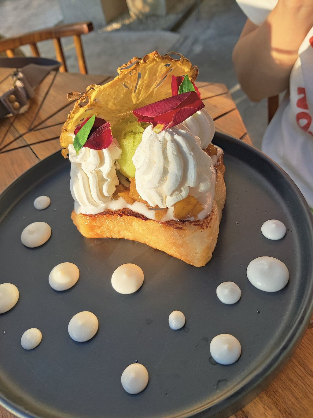 Pros: Vegan french toast, Macaron