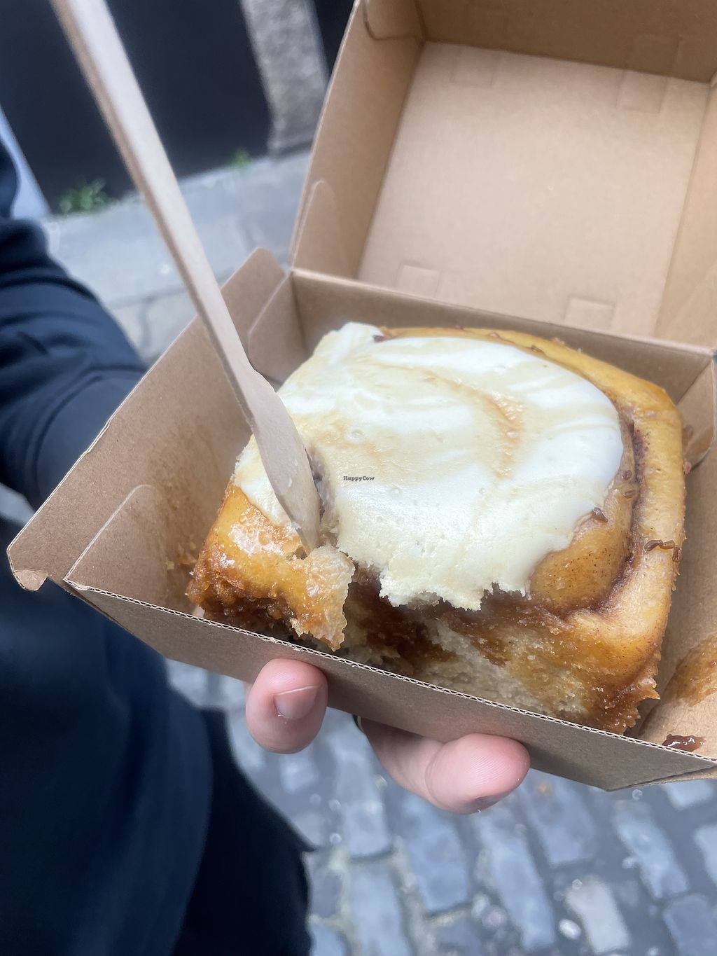 Popped in here to get a cinnamon roll to take away for the drive. So soft and yummy and so many good vegan options