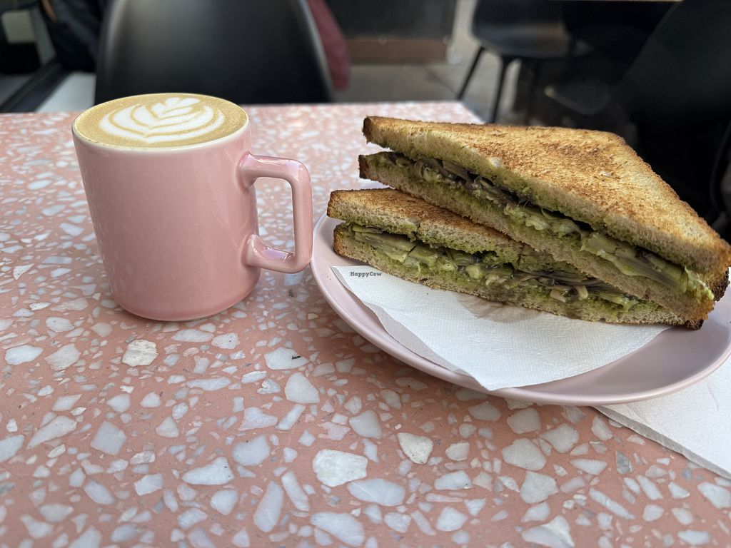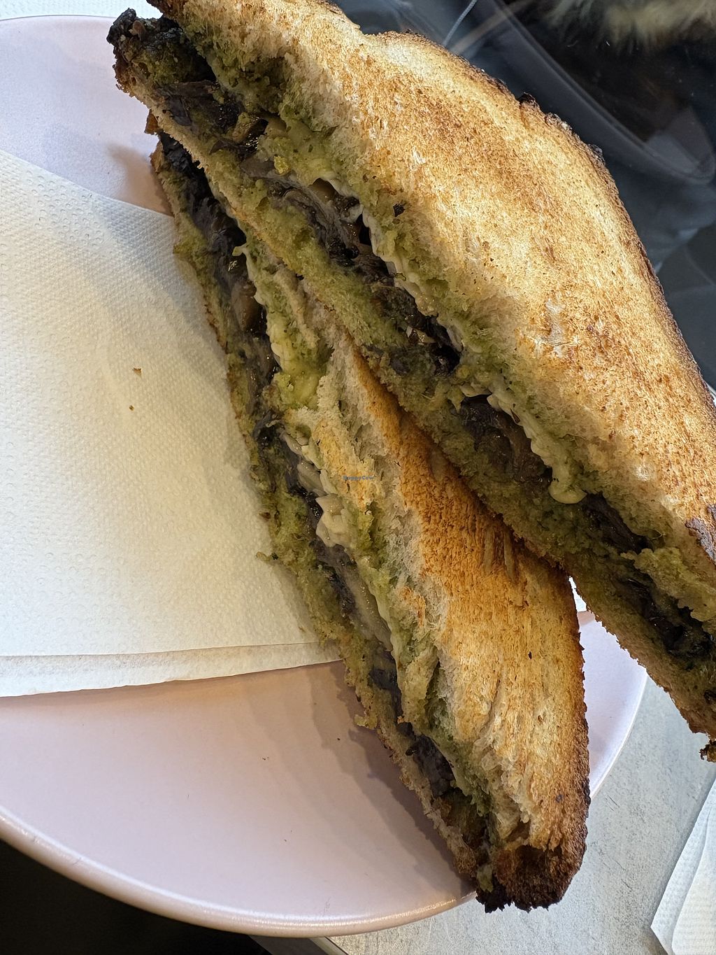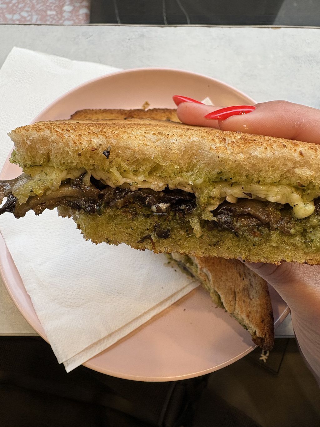Delicious food and great service. The staff were welcoming. I had the pesto mushroom toastie which was super tasty. The coffee was great too. I also had the pan de muerto which was excellent.