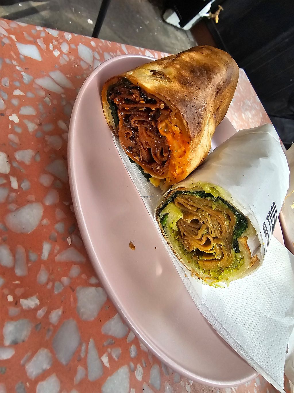 Delicious!! I got the pesto Seitan wrap (right) and my partner got the…