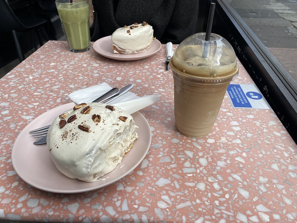 I had the cinnamon bun with cashew cream and it was delicious, the coffee was also great! A great gem in Dublin!