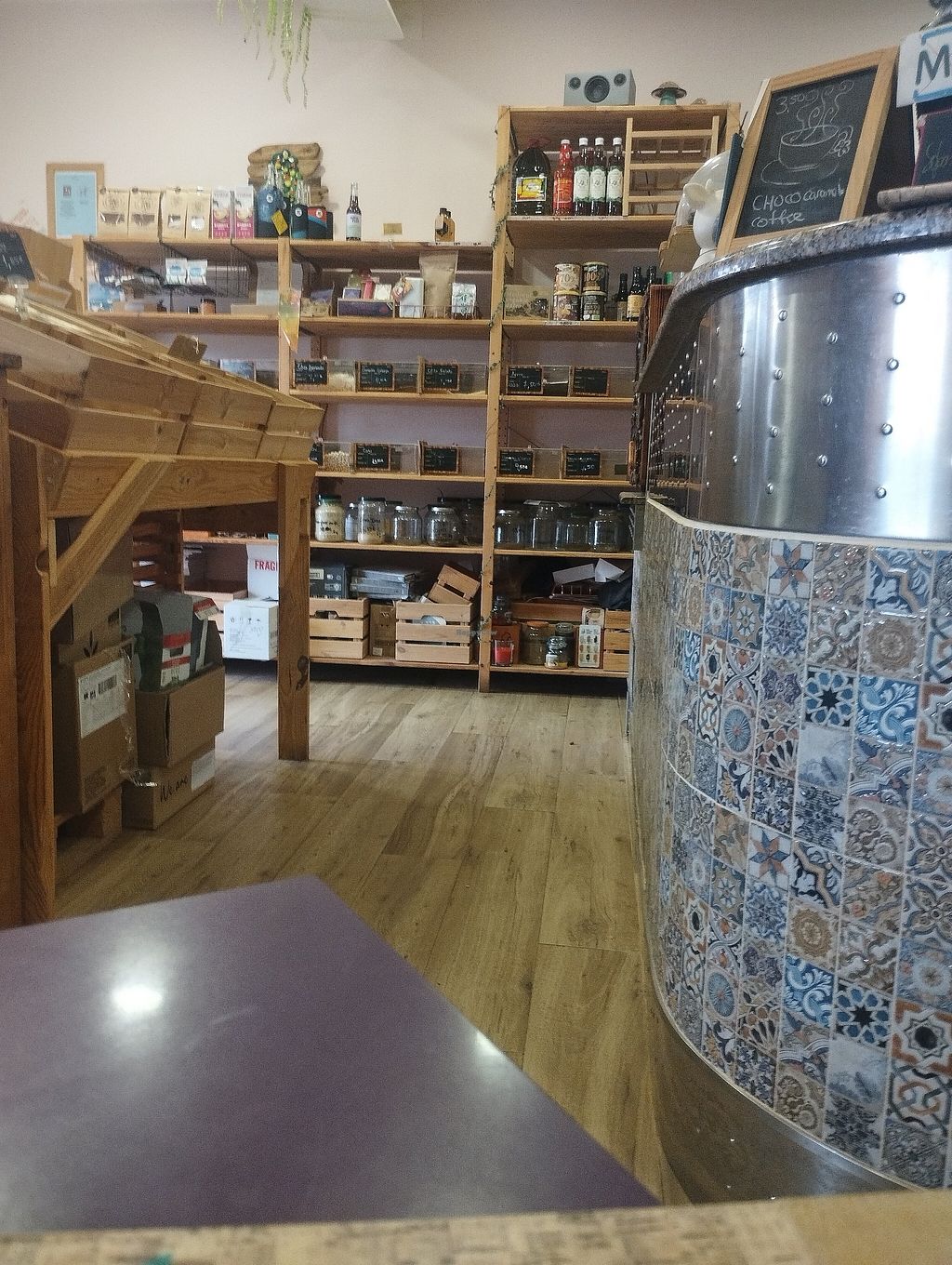 We were lucky to drive by this small gem. A small café and zero waste shop in a perfect union. The food was tasty, the cakes delicious and I was very happy. We had a pizza slice, brownie cookie and pastel de nata. In the shop you can buy oils and creams and other small items, cheeses, vegetables and bread a well as grains and muesli- bring your own container or use one of the jars available. The staff was a bit stressed though.