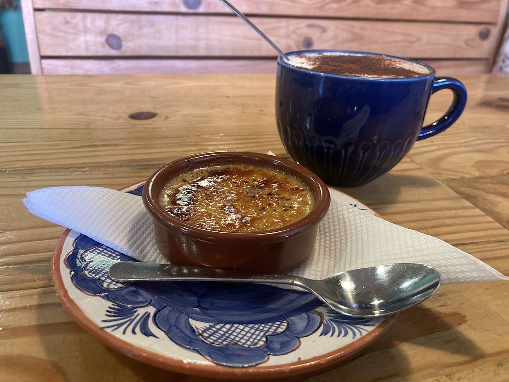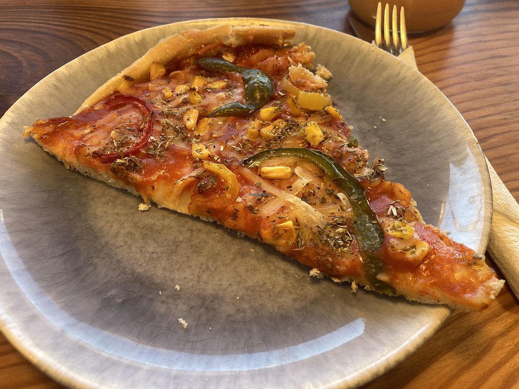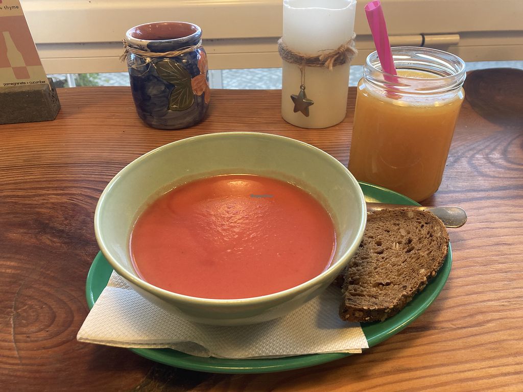 I arrived late in the afternoon, so there was no longer a lunch menu. The savoury dishes available were pizza and soup. The soup was excellent, but the pizza slice wasn't to my taste. The vegan crème brûlée was my highlight and I enjoyed the cappuccino with oat milk. Also the freshly squeezed orange juice was delicious.