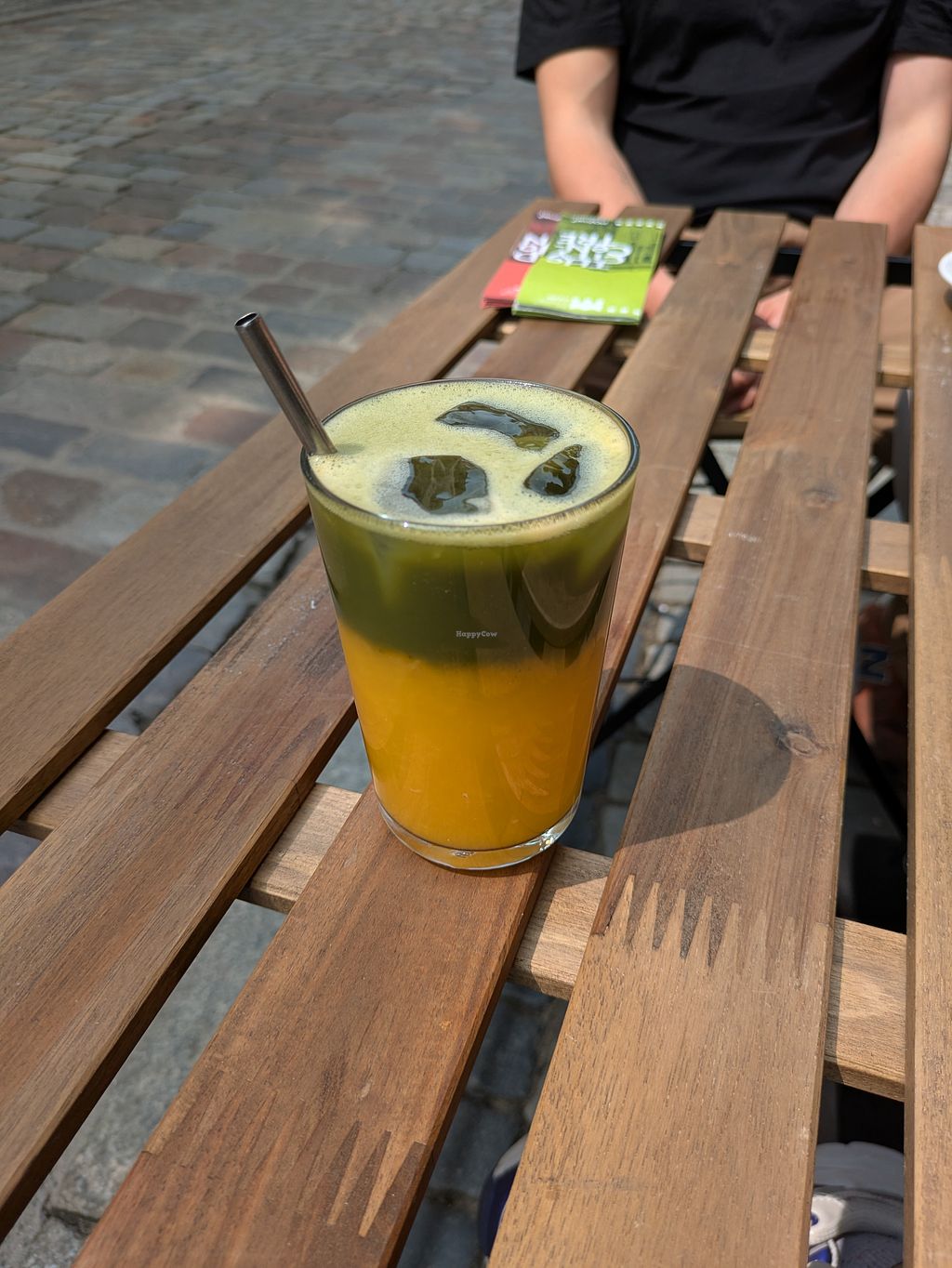 Health focused cafe with calorie labels for each dish. I had scrambled tofu and an interesting orange/matcha-drink and it all tasted great. We got a table outside in the sun which was great.