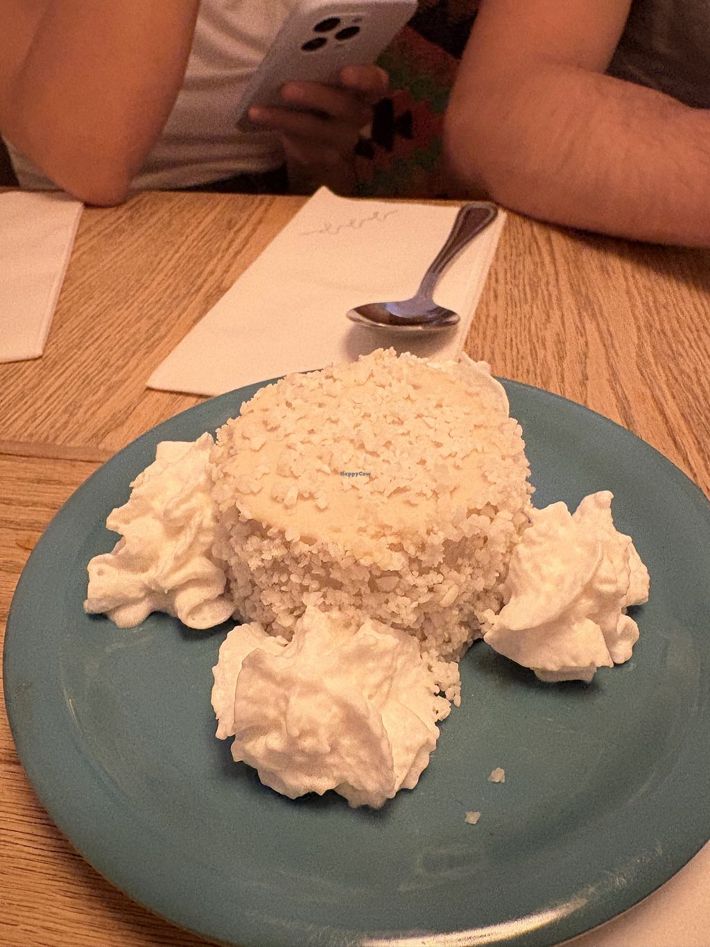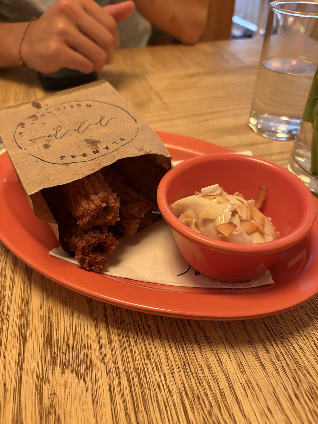 This is a fully vegan restaurant, and I found the food delicious. I could definitely recommend the enchiladas suizas—they were very tasty, but also extremely spicy, even after asking for the hot sauce on the side. I feel that if they hadn’t been so spicy, I would have absolutely loved them. The churros come with a delicious white sauce, and the coconut cake is a great option if you’re a fan of coconut.