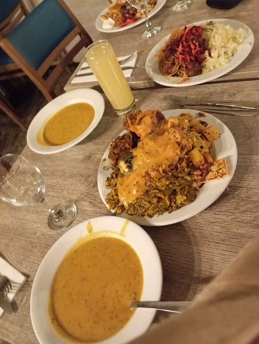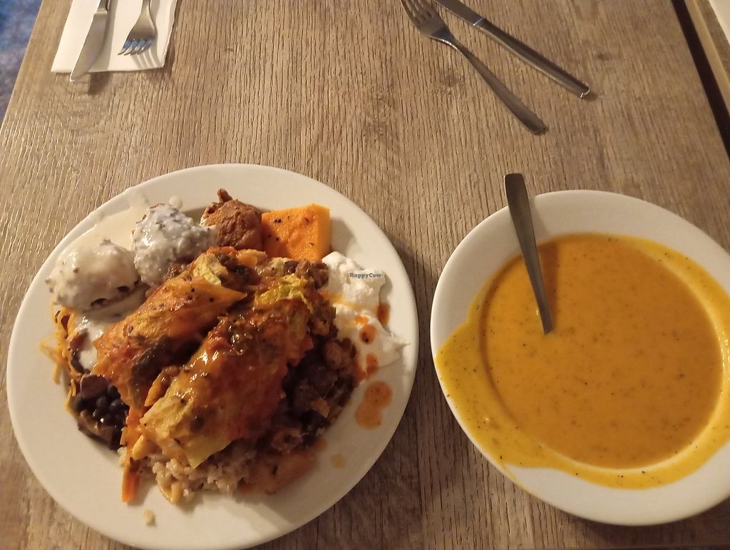 A well decorated, well stocked (mostly Indian) buffet with plenty of vegetable based sides and rice. We chose to get a plate eat instead of the buffet for dinner which was 8.50 instead of 13.50 plus drinks, water (1.6 for 500ml) and desserts must be added on. With a loaded plate, it felt like a steal for such yummy. diverse, plant based food. Can only recommend.