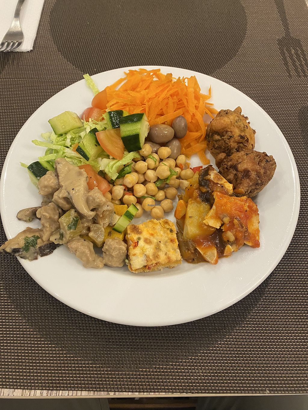 I had a couple of curried dishes, cannelloni, meatballs and fours bits of salads. Everything fresh and tasty.
