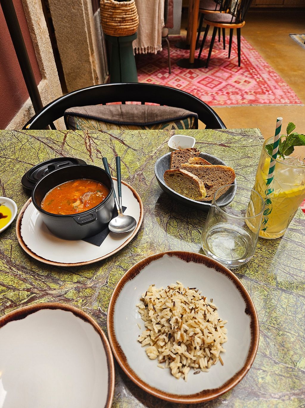 Very creative and tasty food ! The vibes were cool and nice music! Pleasantly suprised to see so many tasty vegan options in this place as Porto needs more vegan spots ! One lady was serving everyone and she should have an award for being so calm and professional under the pressure of looking after all of us ! She was kind, upbeat and managing the whole floor on her own! Give that lady a raise ! Would have given 5 stars if she had a team with her - not fair she was having to serve on her own! But she did a great job! Food was great