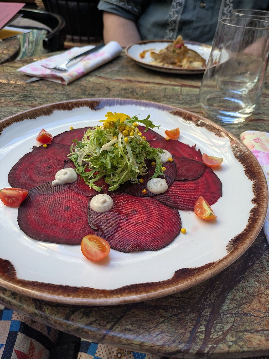 Where to start with this one. We walked in and the restaurant was very musty and damp smelling, and it went downhill from there. They handed us a cocktail menu, but wasn’t able to make any cocktails. The food was at best bland and at worst inedible. We ordered 4 dishes, none of which were accurately described in the menu. I got the tortilla which was stuffed with seitan despite that not being mentioned in the description. I personally don’t like seitan and wouldn’t have ordered it. it had very little flavor. My husband ordered the carrot tartare, which was terrible and tasted strongly of wasabi despite that also not being mentioned on the menu. For mains, he got the wellington which was ok, and I got the stew, which was bland and clearly made with sad canned beans and tomato paste. I hate giving bad reviews, but I have to be honest here. Vegan food can be amazing but places like this bring the reputation down.