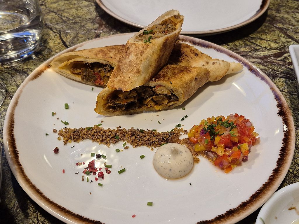 Lovely for a date night or a special meal in Porto. Varied menu with both local and international dishes - lovely to have a vegan version of ‘cod’ which is on many menus in the region. Incredible flavours - can highly recommend the tortilla wrap starter and the baked fish. Super tasty! The ‘chocolate garden’ dessert wasn’t as special as expected - just a brownie with some chocolate mousse, but still a nice way to end the meal. Nice ambiance and friendly staff. Good value for money too!
