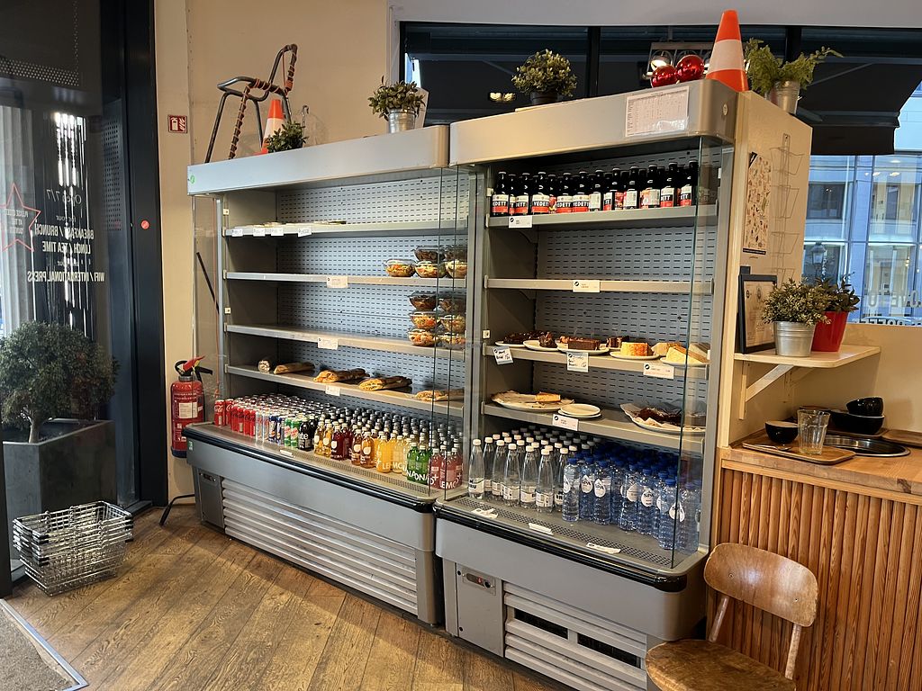 Serves meat, vegan options available. Cafe serving breakfast, lunch and coffee. Offers marked vegan items such as açai bowl, granola bowl with coconut yogurt, avocado & beet hummus toast, gluten-free pancakes, cauliflower bowl and a veganizable bagel sandwich with hummus & roasted vegetables. Plant-based milks available for drinks. Open Mon-Fri 08:00-18:00, Sat-Sun 09:00-18:00.