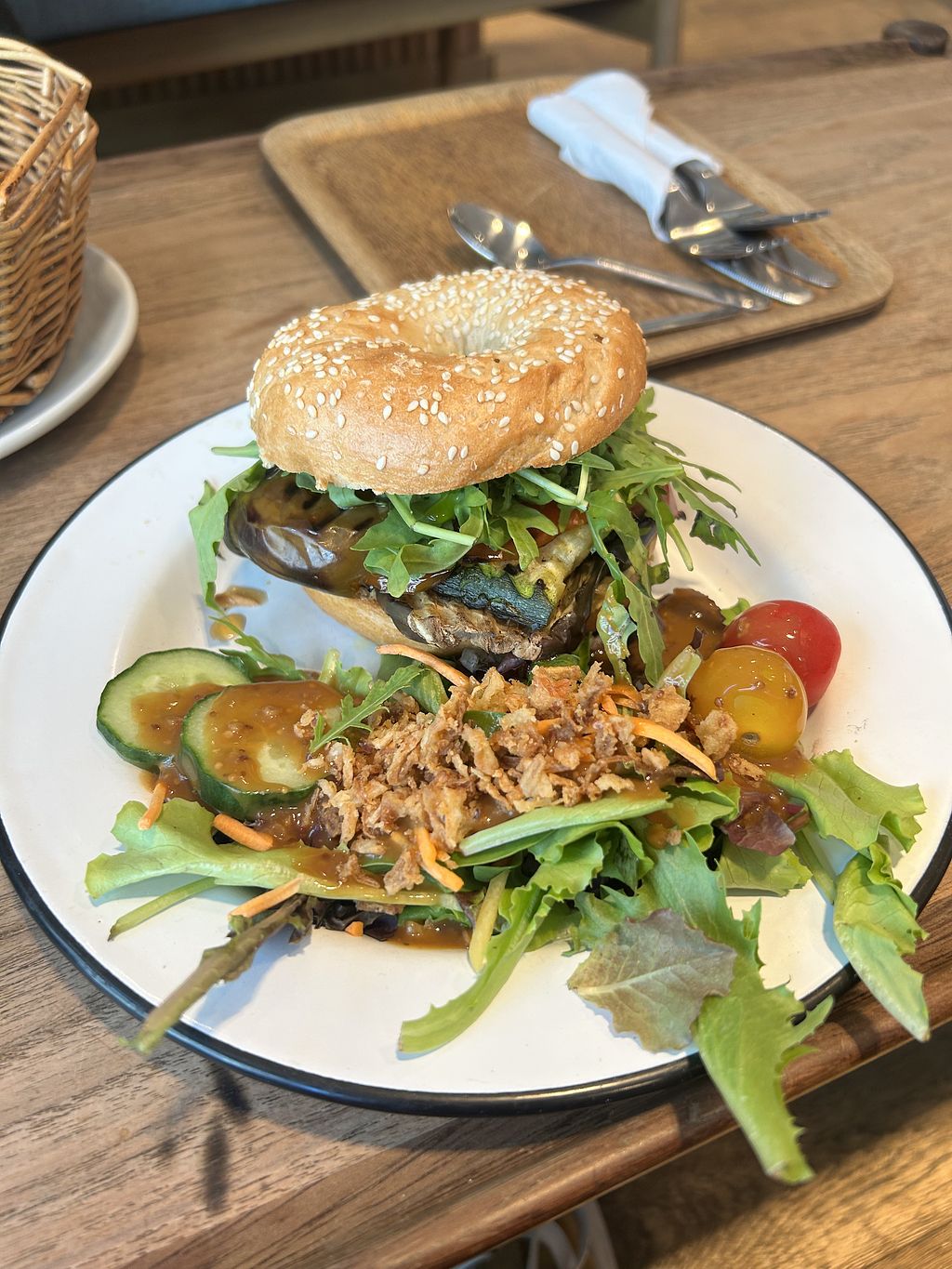 The bagel was full and packed with flavour. A bit messy but nice flavours.