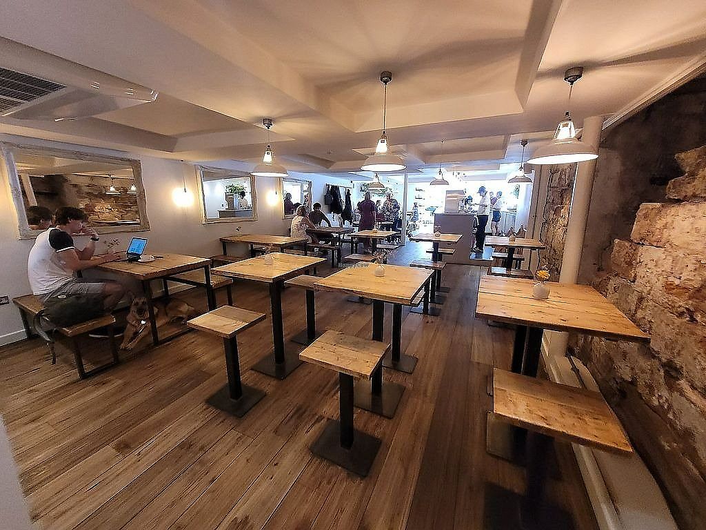 The larger of the two Jaunty Goat cafes, but this store serves dairy, eggs and honey, unlike the other one which is completely vegan. I can see why some people do get caught out with the two close together and I wasn’t asked what mylk I’d like for my drink here and needed to specify. Food menu was quite clear though. I had a matcha latte, which was ok, would’ve been nice to have been offered sugar/sweetener. This store is table service for eating/drinking in the cafe. Dog friendly.