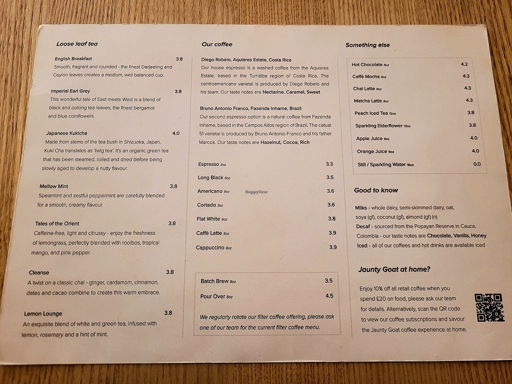 We called in here thinking it was a vegan only cafe, only to discover that there are 2 Jaunty Goat cafes within a 10 min walk of each other. We had inadvertently gone to the veggie cafe in error. Given choice, we always pick the vegan only eateries to support vegan businesses. Not sure why one is vegan, while the other is veggie with some vegan options.