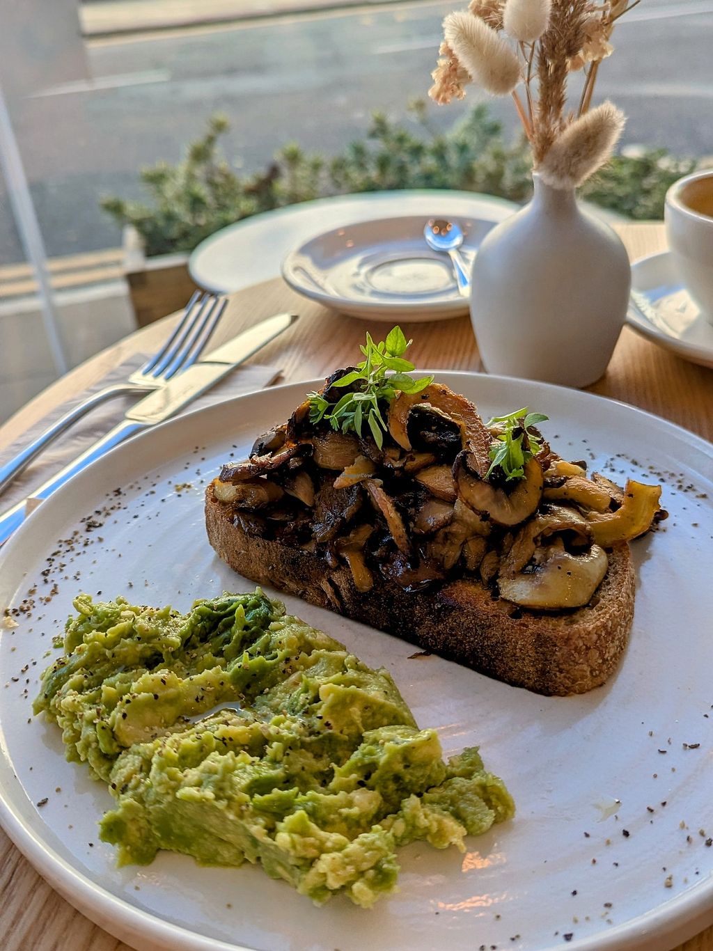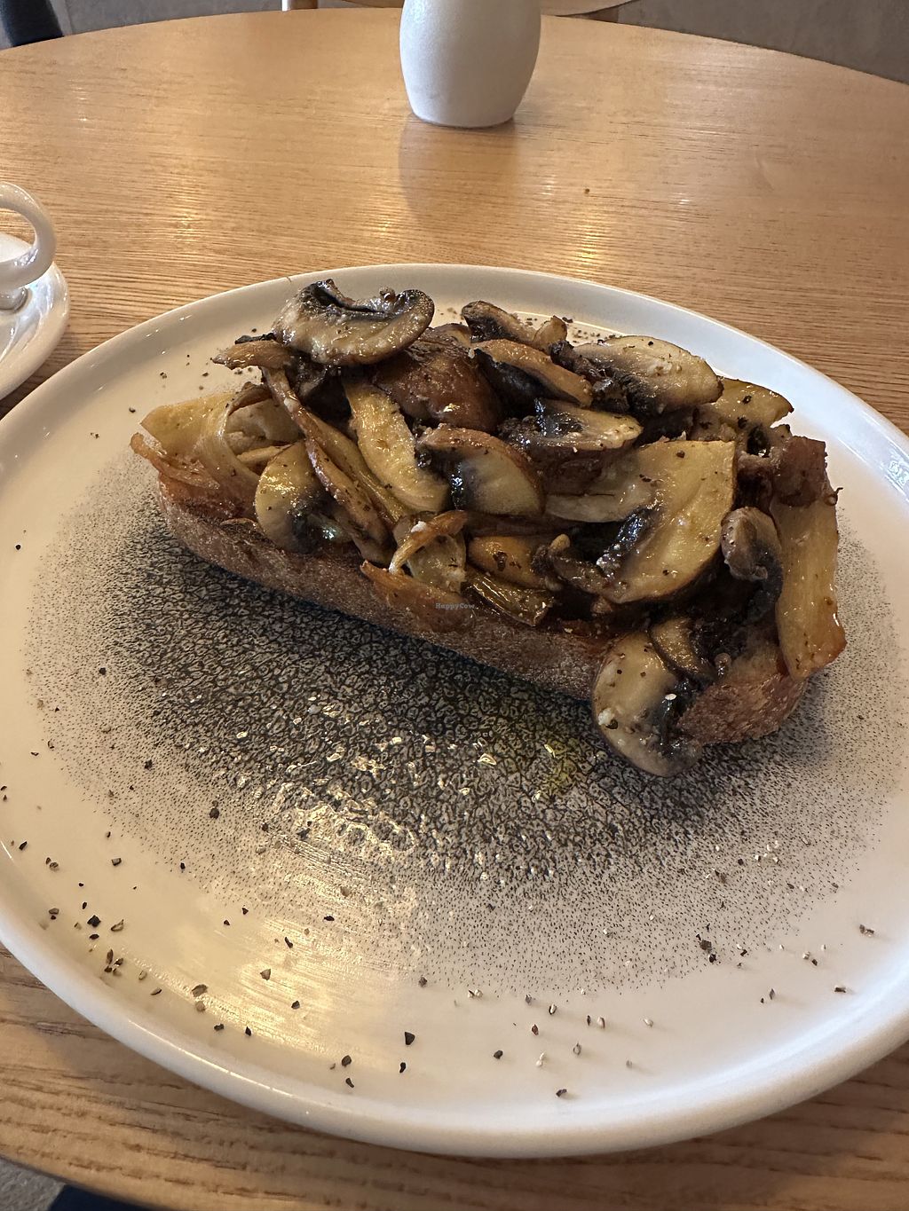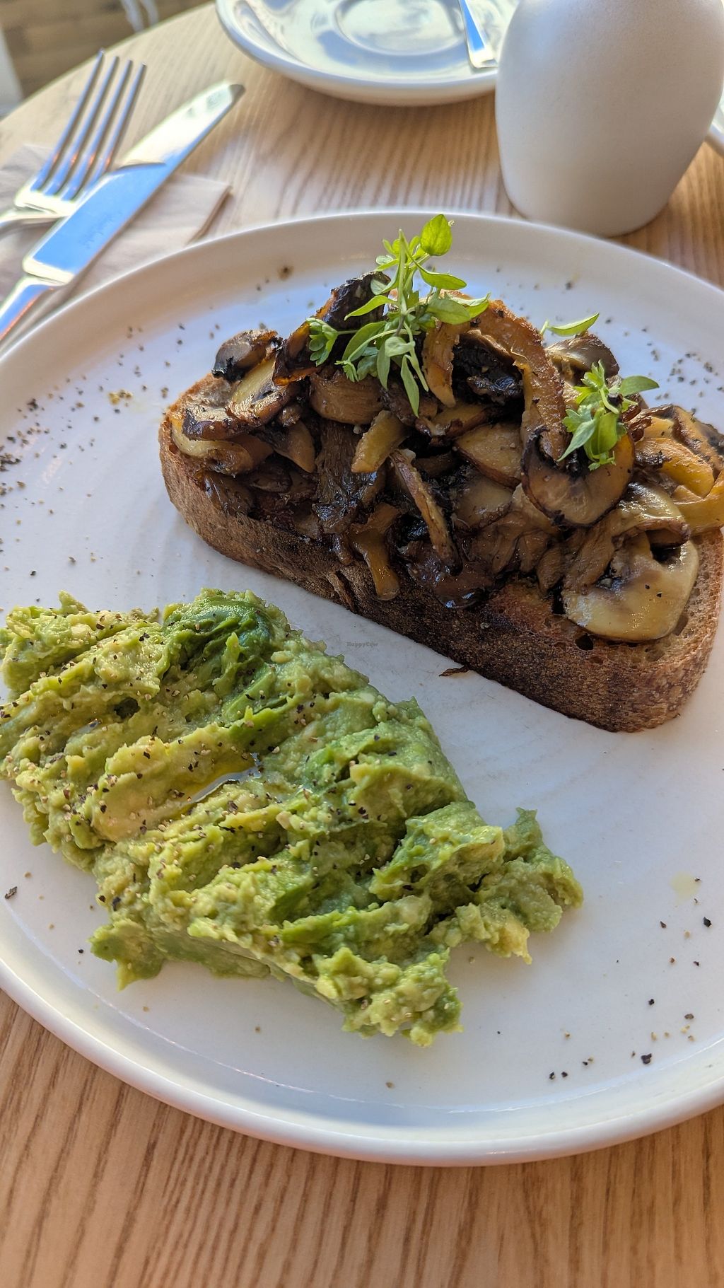 Ordered wild mushrooms on toast and smashed avocado on toast. Fresh, fast and very tasty. Good service.