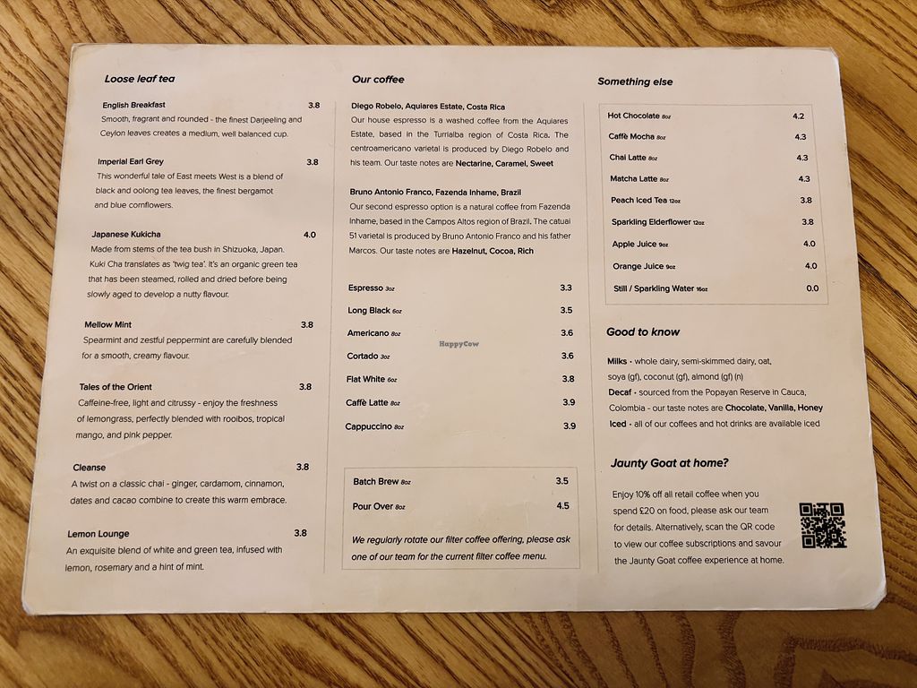 Read moreDuring my visit, the vegan items available for purchase consisted of a Sourdough Loaf, a Seeded Sourdough Loaf, Focaccia, and a Cinnamon Swirl. There were also Plain and Almond Croissants in the bakes counter, but these were vegetarian only. Honestly, I was a little disappointed to see only one vegan baked sweet treat available, especially since this is a business whose customer base is primarily made up of people concerned with minimising or eliminating animal products from their diet. I also feel that Jaunty Goat Bakery would have benefited from labelling which products were vegan, as neither the menu nor any signage in the bakes display indicated this.