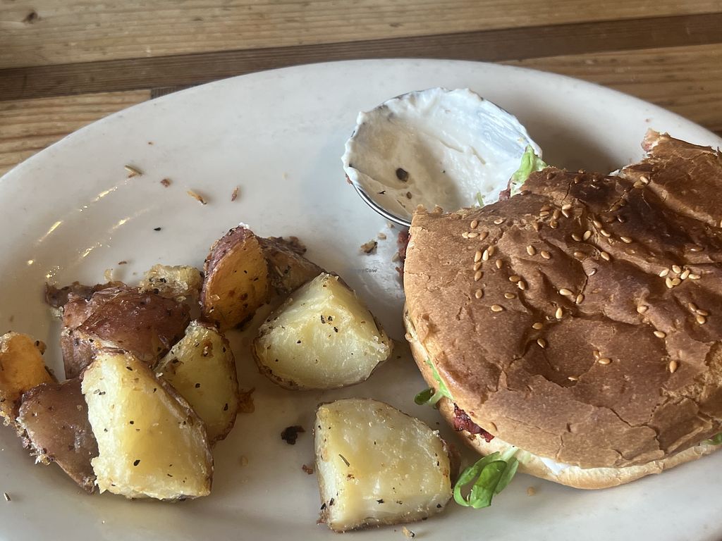 Read moreI really don‘t get though why the staff isn‘t asking everybody if they want to sit or have a take away. Everybody else eating next to me inside the restaurant ate out of take away containers and used plastic forks & knifes. And knifes unfortunately was just available as plastic. I really don‘t get this kinda attitude in the US especially - and here also a restaurant next to the beach kinda.
