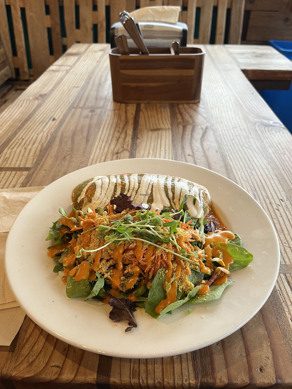 I thoroughly enjoyed the Half Nekked Burrito & the good size salad w/ tasty dressing that it came with. The Half Nekked Burrito was nourishing, tasty, & healthy.