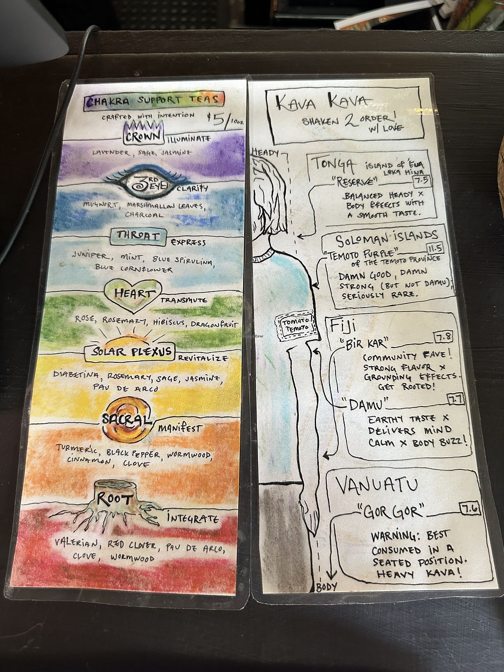 Lots of space to work or meet with friends in this creative cafe space, serving full espresso menu, kava, and baked goods. Plans for events and meetups in the future, but just starting out right now. Super sweet staff, definitely a great option any time of day!