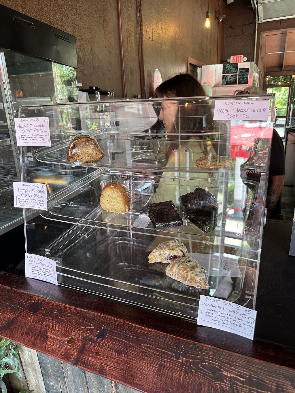 Fully vegan cafe serving coffee beverages, vegan baked goods and bottled/canned beverages. Oat, macadamia nut, and coconut milks available. Open Mon-Sun 12:00am-12:00am.