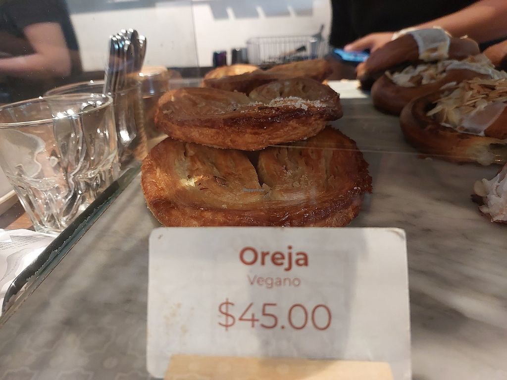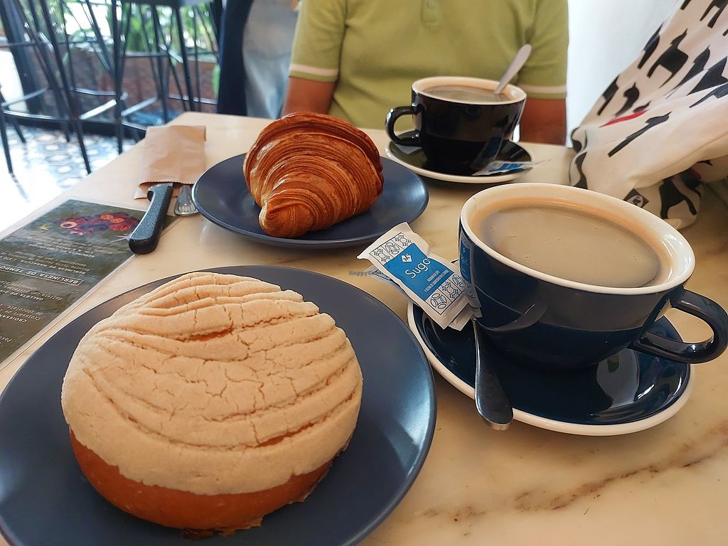 The store sells mostly non-vegan food, but the few vegan options are great: Vanilla and chocolate Concha; orejas and croissants; they were all great, if a bit pricey.