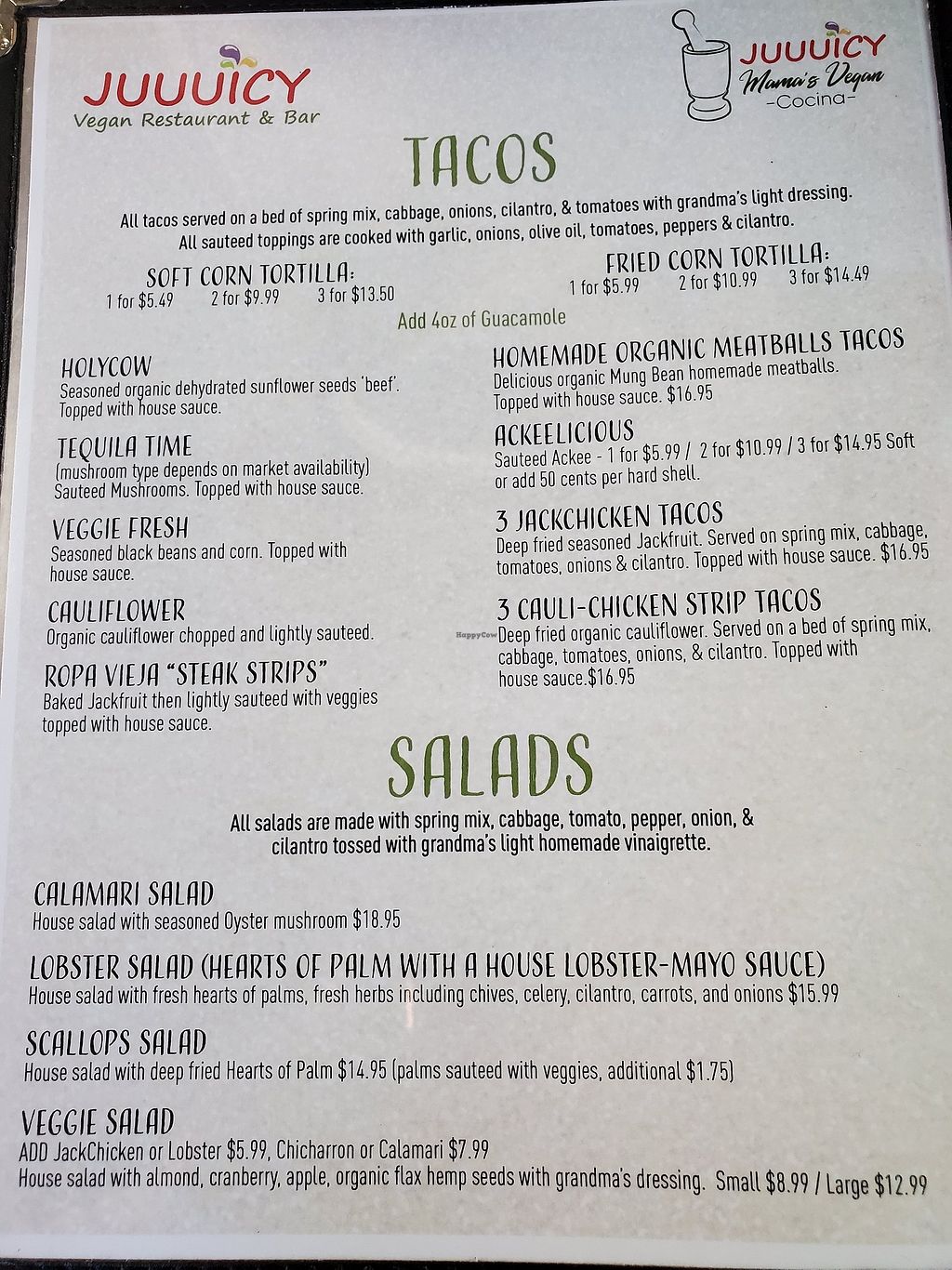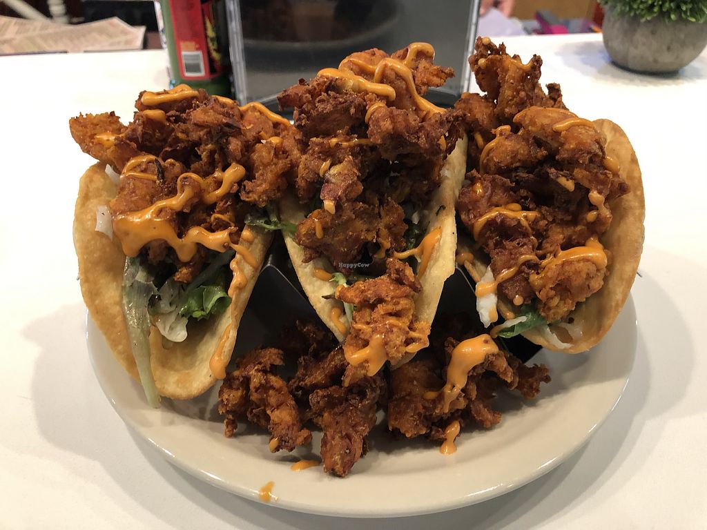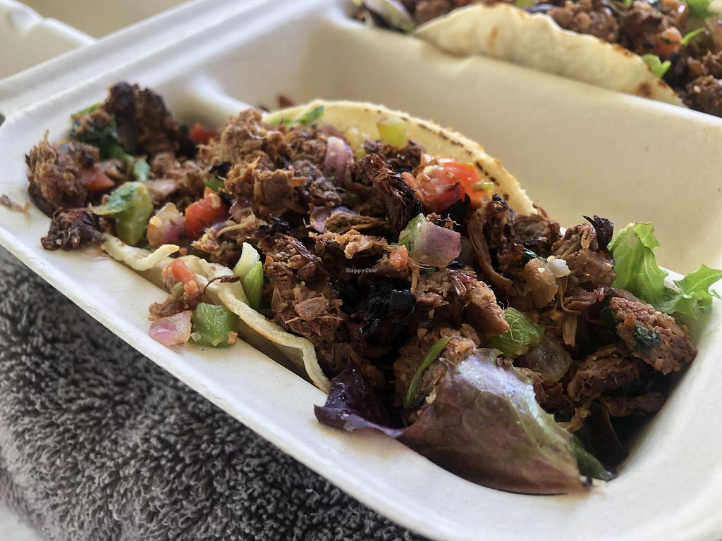 I got a fried jerk jackfruit taco. In a fried corn shell. Extremely flavorful and filling. Not greasy. The sauce was very mild and subtle. Tastes better than regular food. It had 3 distinct layers of flavor. One of the best tacos of my life. And the fried jackfruit is so good you could eat it on its own and be delighted.