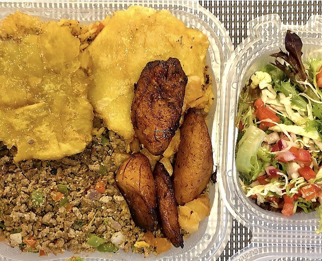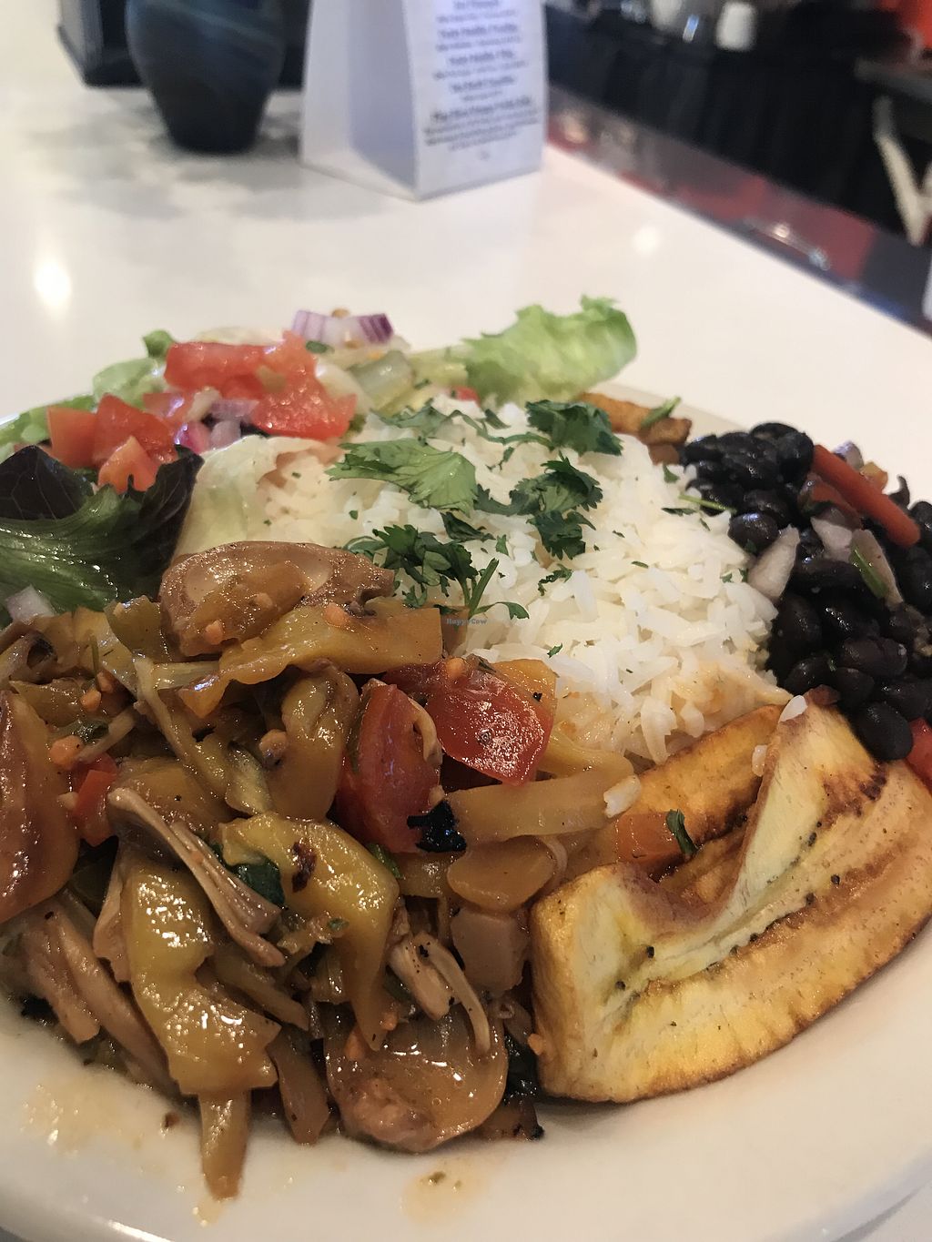 This dish, VIP House Rice Meal is absolutely delicious! Organic dehydrated sunflower seeds made to look and taste like ground beef, tostones, salad and rice with veggies accompanied by a side of plantains sautéed with pineapple. Portion size is ridiculously huge! For dessert we had a peanut butter pie and a chocolate coconut pie, both were to die for and gluten-free. Family run business and extremely sweet and friendly. This place is wonderful and I highly recommend! It’s my new favorite place! ❤️😋🌱