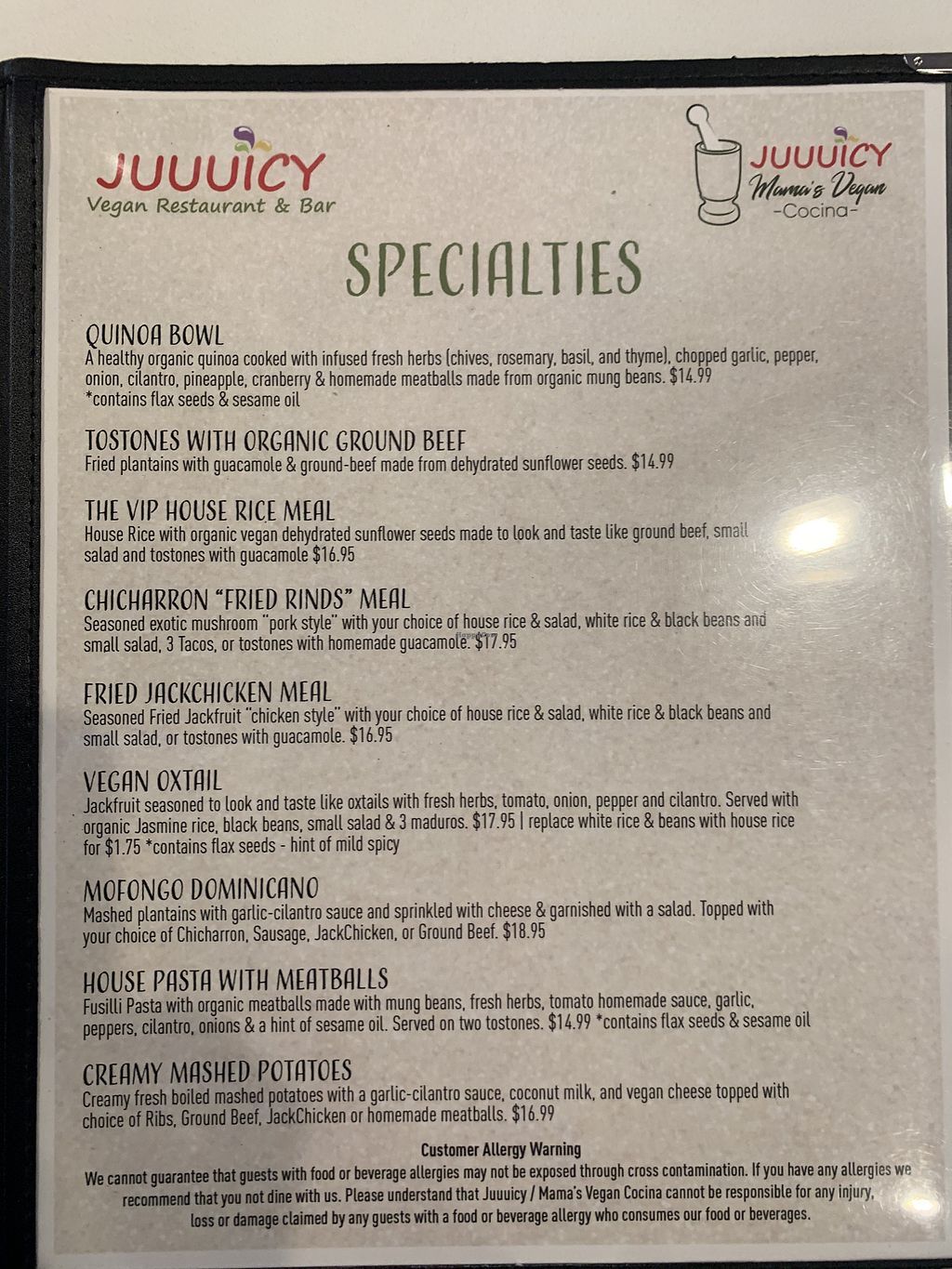 This is real comfort food with the Dominican flair. All kinds of savory dishes with mock meats but not too processed. Lots of fried food however, but it’s worth it. Lots of smoothies and desserts. Portions are big which justifies the prices. It’s a wonderful family business and you can tell they are working hard, always with a smile. As a local, I’m definitely going to work it into my regular routine !