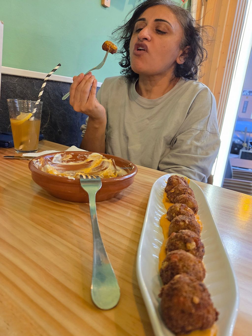 Read moreBetween two, we had one seaweed wrap, olives, croquettes and tempeh skewers with drinks, we left pleasantly full.