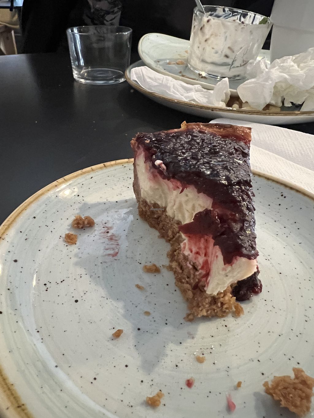 I stopped by Kaf during my trip to Copenhagen and absolutely loved it. The atmosphere was cozy and welcoming, perfect for a quiet break in the middle of the day. I tried their vegan New York cheesecake, and it was a pleasant surprise—rich and creamy, but not overly sweet. The blackberry on top added a fresh, tangy touch that balanced the flavors beautifully.
