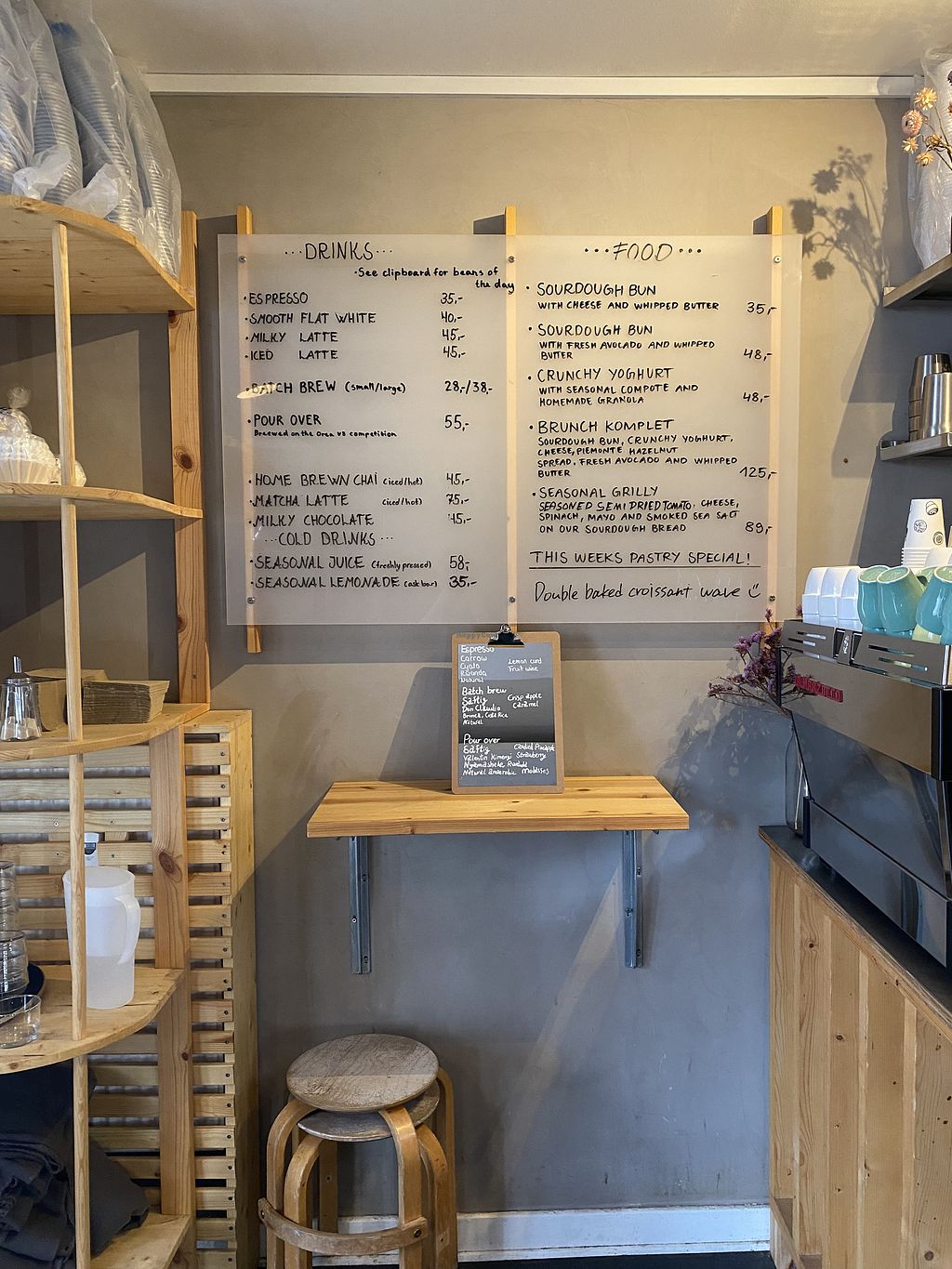 The menu😄Drinks on the left and food on the right, including prices!