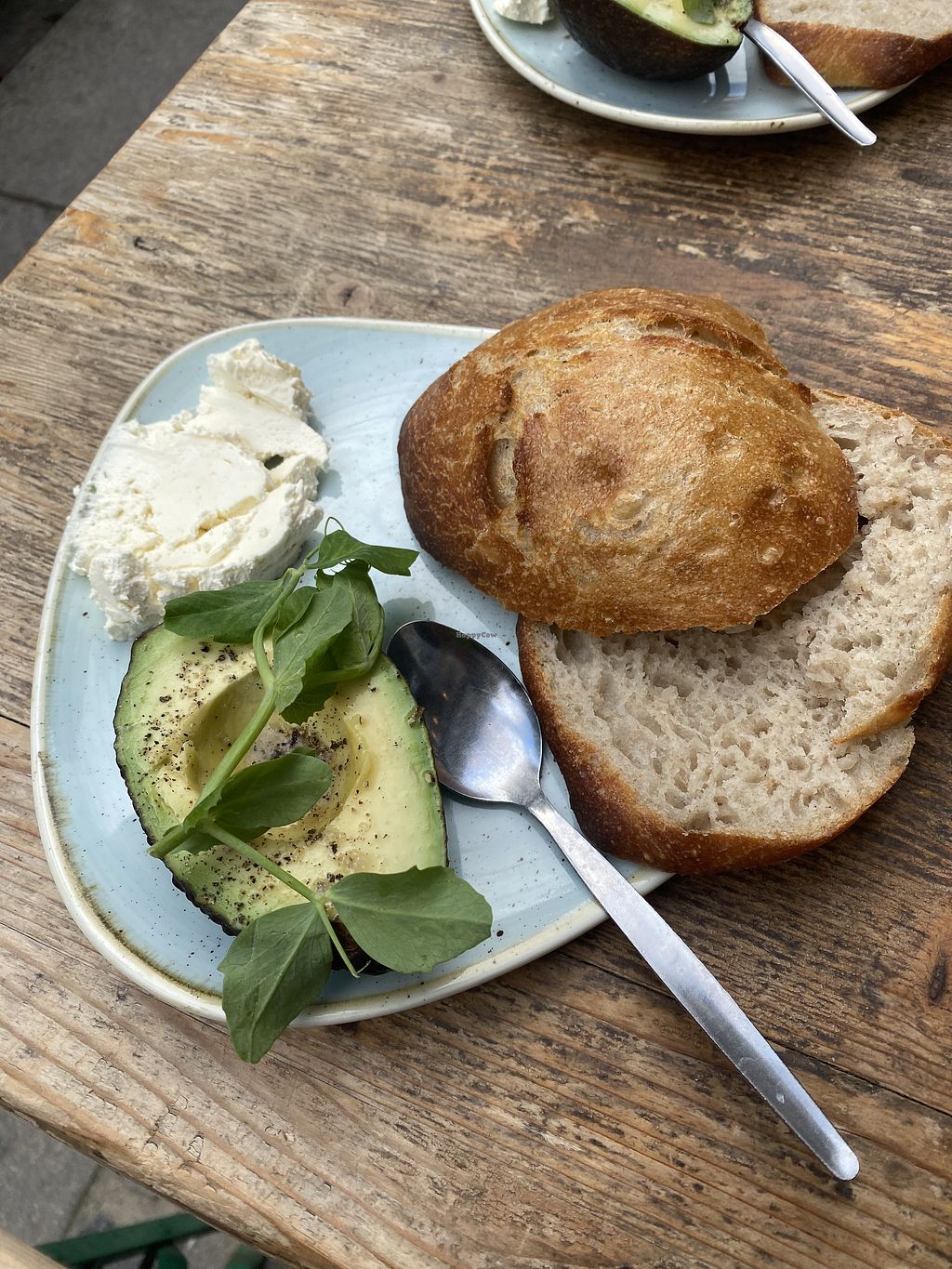 Sourdough Bun with fresh avocado and whipped butter.