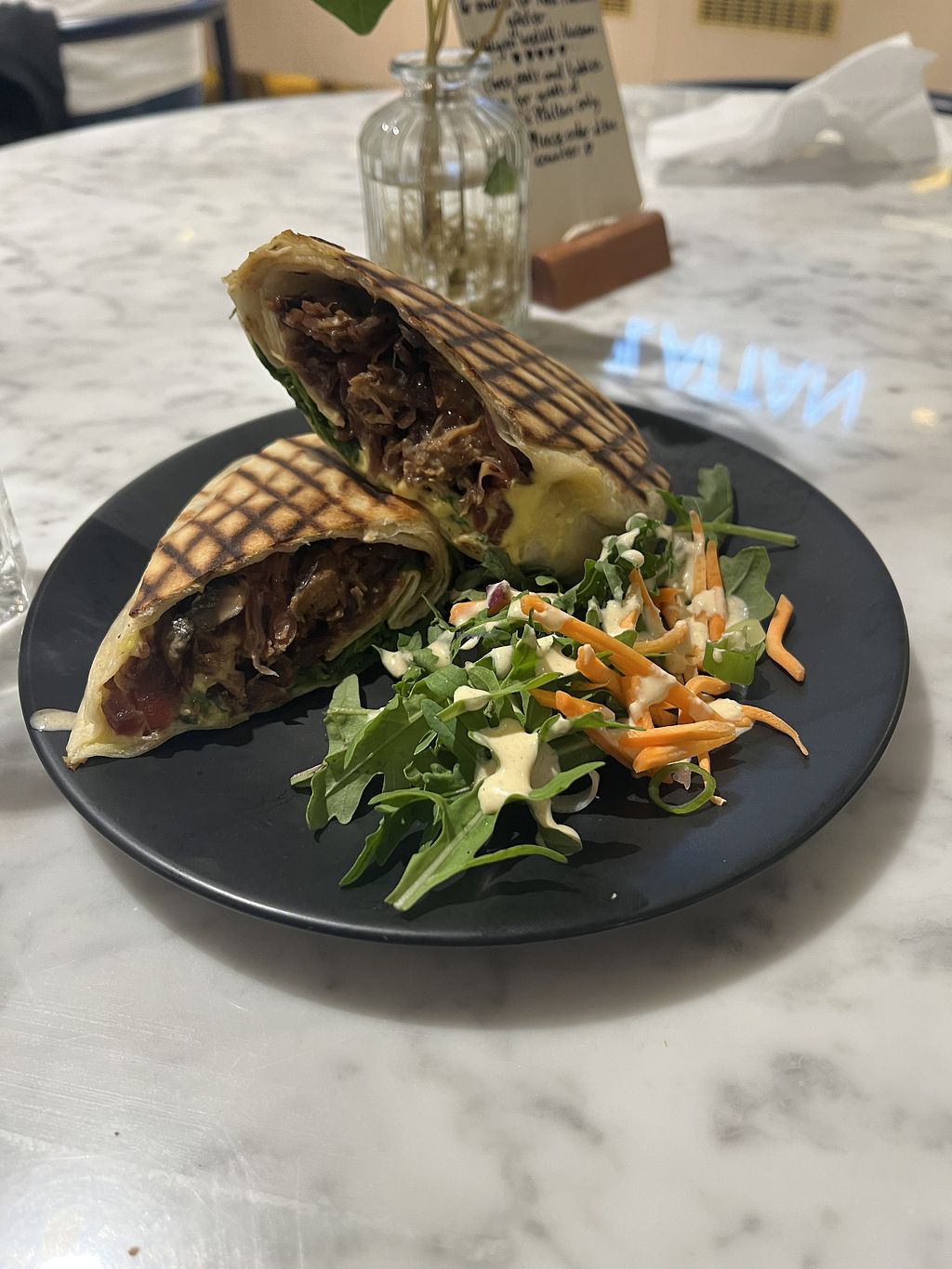 A very pleasant surprise. The wraps were so delicious that we returned the next day. Also, probably best cinnamon bun of my life.