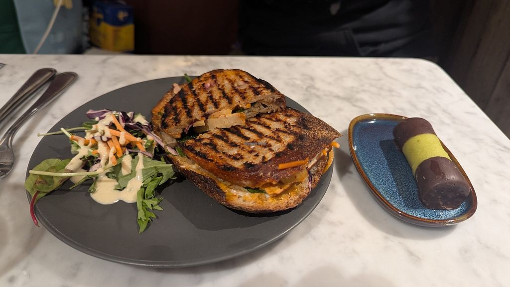 Good selection of vegan pastries/desserts and sandwiches etc. We got walnut pesto sandwhich and tofu banh mi, both were heated for us and tasted good! Sadly was too hungry to take a picture of these haha