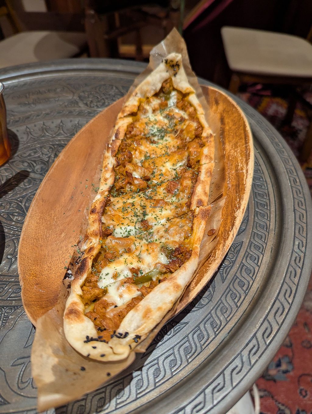 We are both vegan but by the time we got there for lunch, the vegan option sold out. The staff were very nice to make us vegan pizza from the evening menu. And the tea suggeated by the staff were really good.