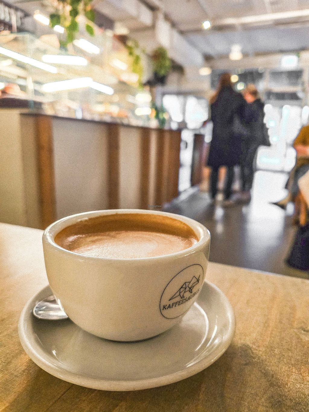 I read it in the reviews already before I went there it is always very busy but it was also a rainy Sunday, so maybe that is why the cafe was completely packed. Luckily we still got a nice little table inside. The waiters got everything pretty well managed so we could order quickly and got the coffee served rapidly as well. The coffee was good but unfortunately you have to pay extra for oat milk. I saw they also have nice vegan food options so I want to go again to try those out.