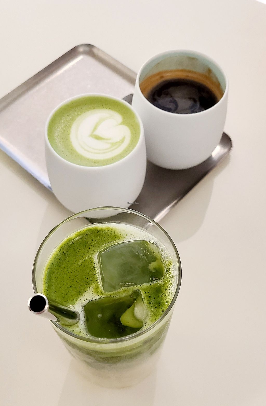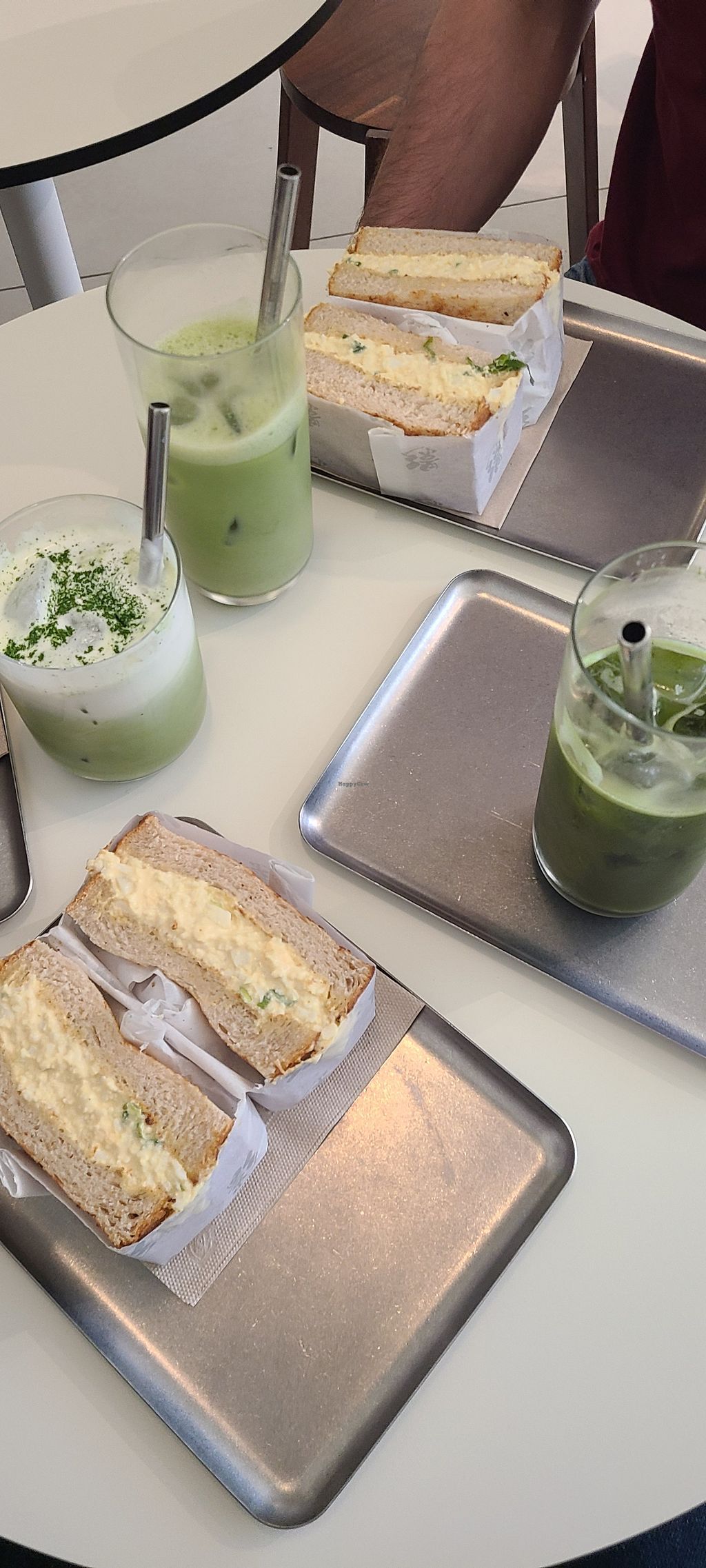 A cute and delicious japanese coffee. Matcha latte with oat milk and tofu sando are yummy !