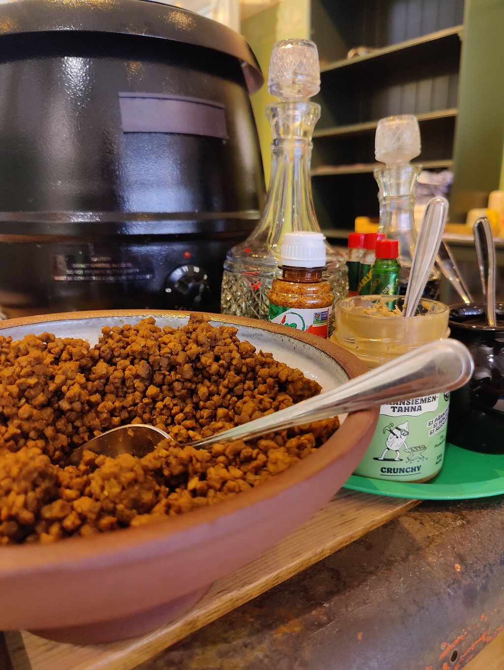 I saw this café on happy cow and didn’t know that it was in a children’s museum. But besides that it was a cozy place. Everything is vegan. I had vegan fish soup. Apparently the soup changes everyday.
