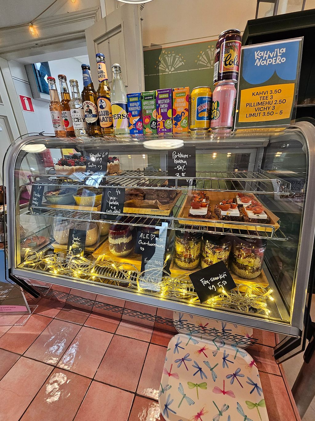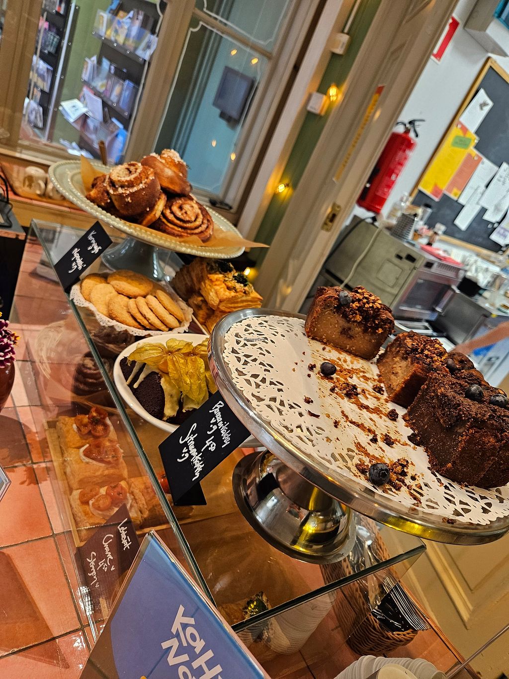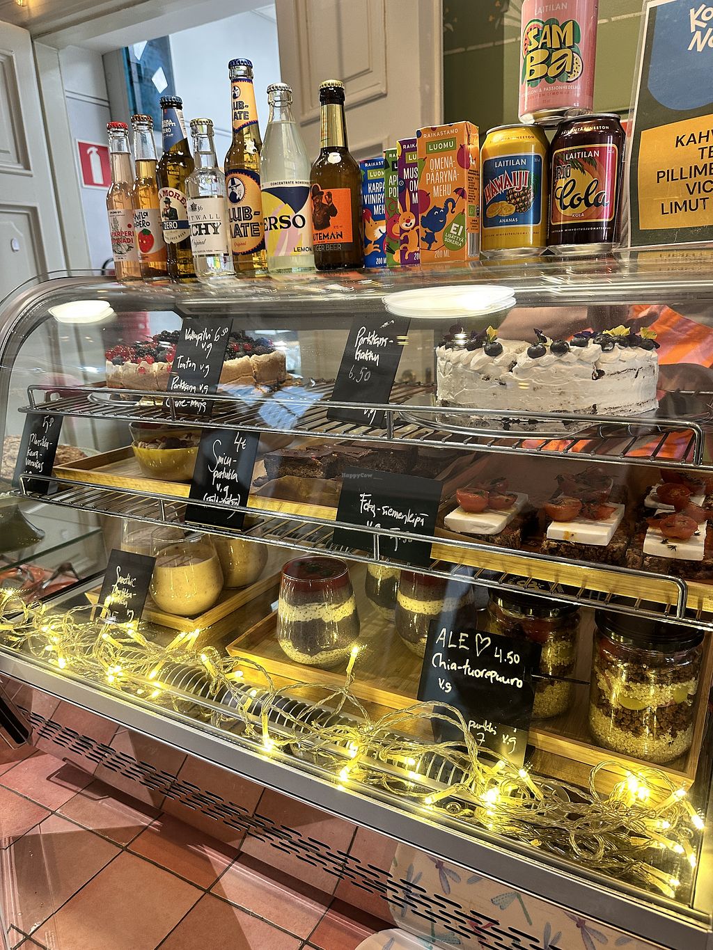 Kiva uusi kahvila! Paljon erilaisia suolaisia ja makeisia myynnissä. Lounastakin oli tarjolla. Maisteltiin kolmea elri makeaa kakkua: porkkanakakku, snickers kakku ja juustokakku. Porkkanakakku oli parasta, juustokakku oli todella juustoinen, nam! Snickers kakkukin vei kielen mennessään. Kivan suklainen!