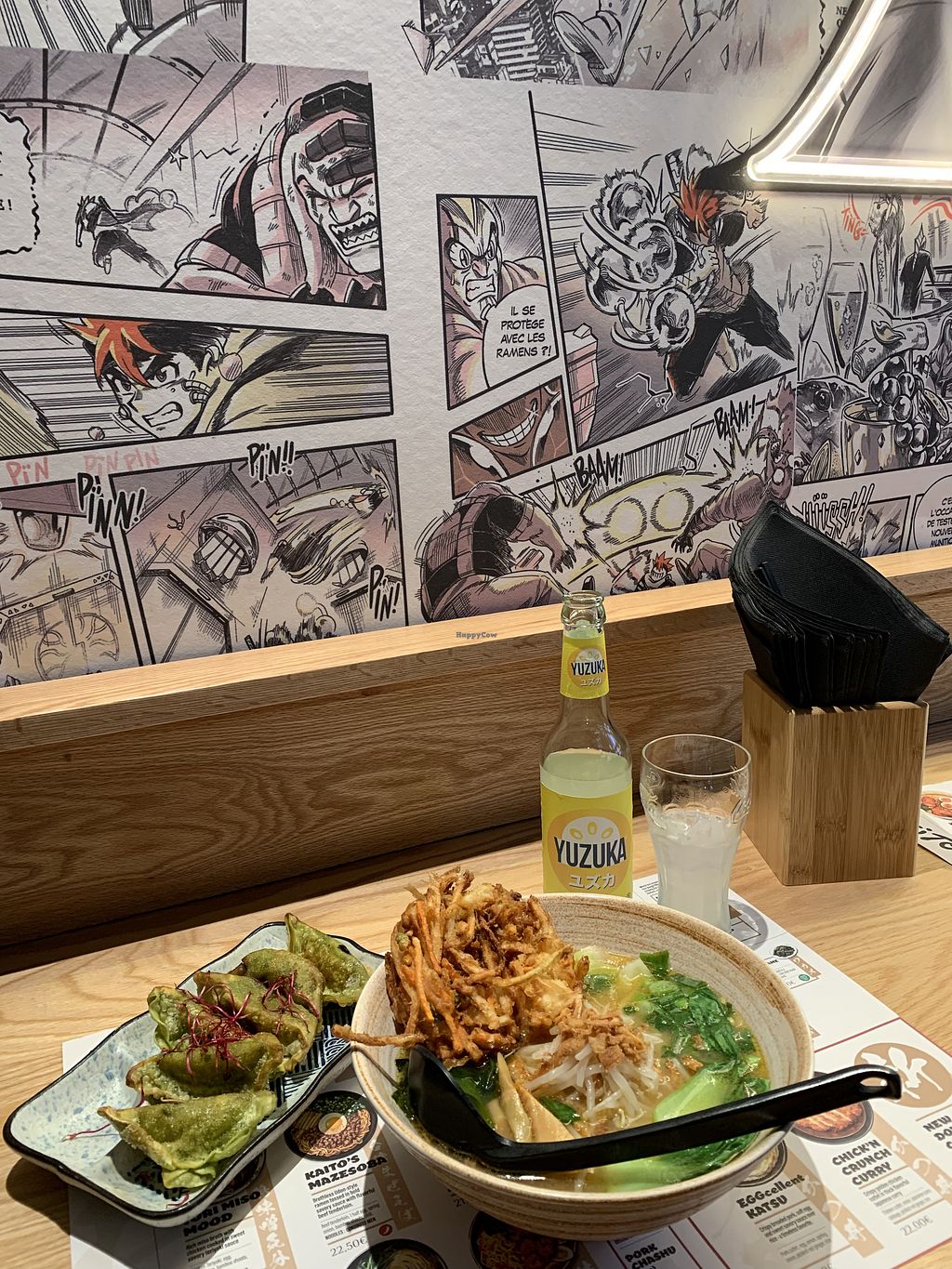 We really liked the vegan ramen and gyoza. The design of the restaurant is very cool