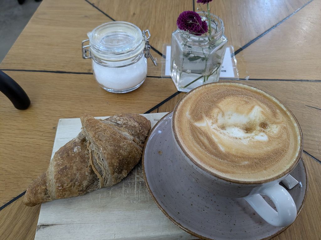 This place feels super modern and would prob be a great place if one needed to work/study. I just had a croissant filled with jam and a soy cappuccino. Both good!