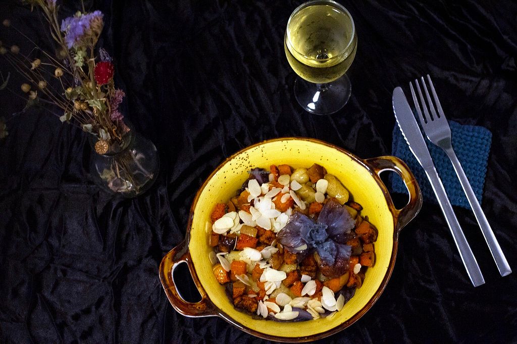Sociaal restaurant met plantaardige gerechten op de kaart.
