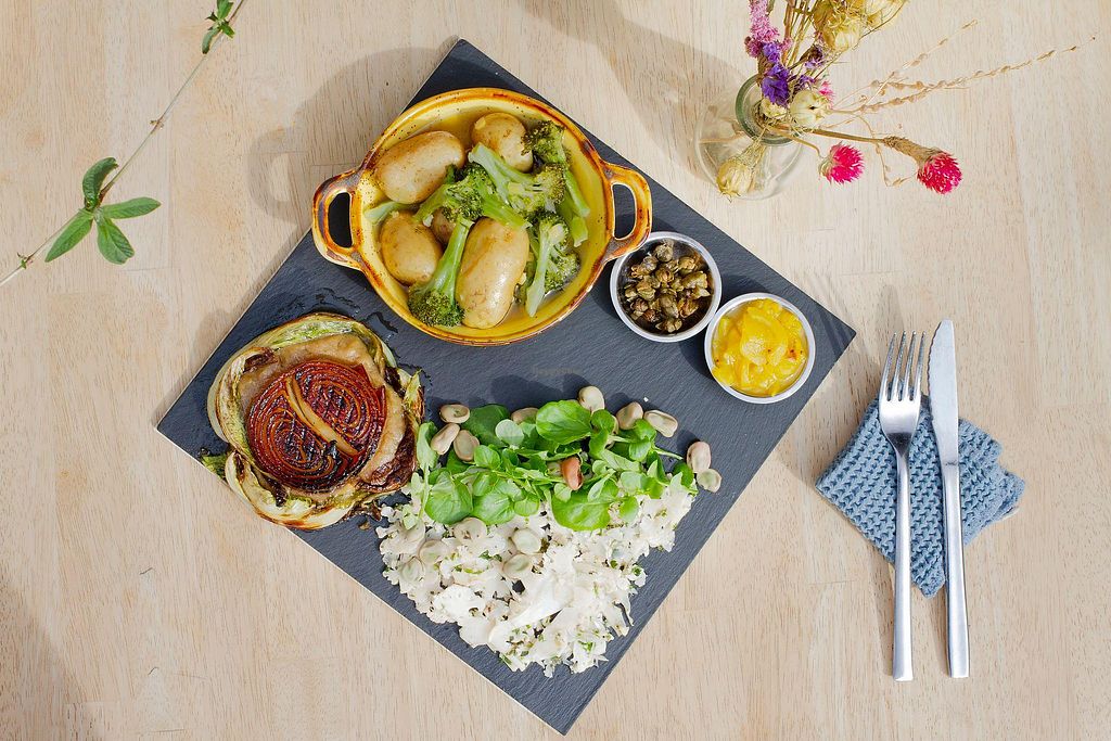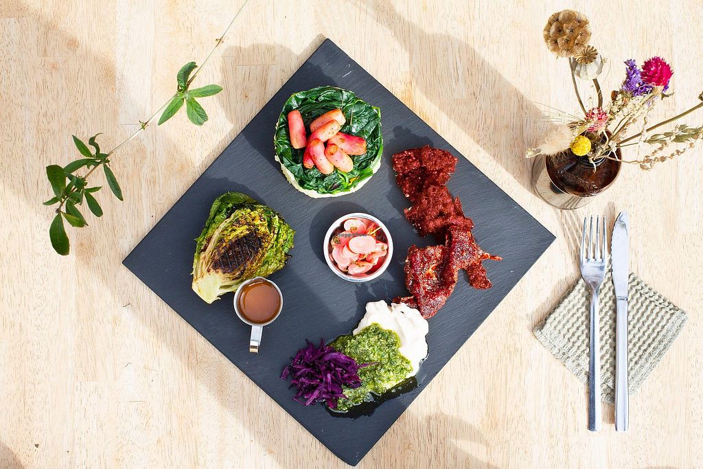 I took the Lentekruidenpurée with poached greens, tempeh and veganaise, and it was honestly delicious. Paired with an Ouwen Duiker beer. Warmly recommended.