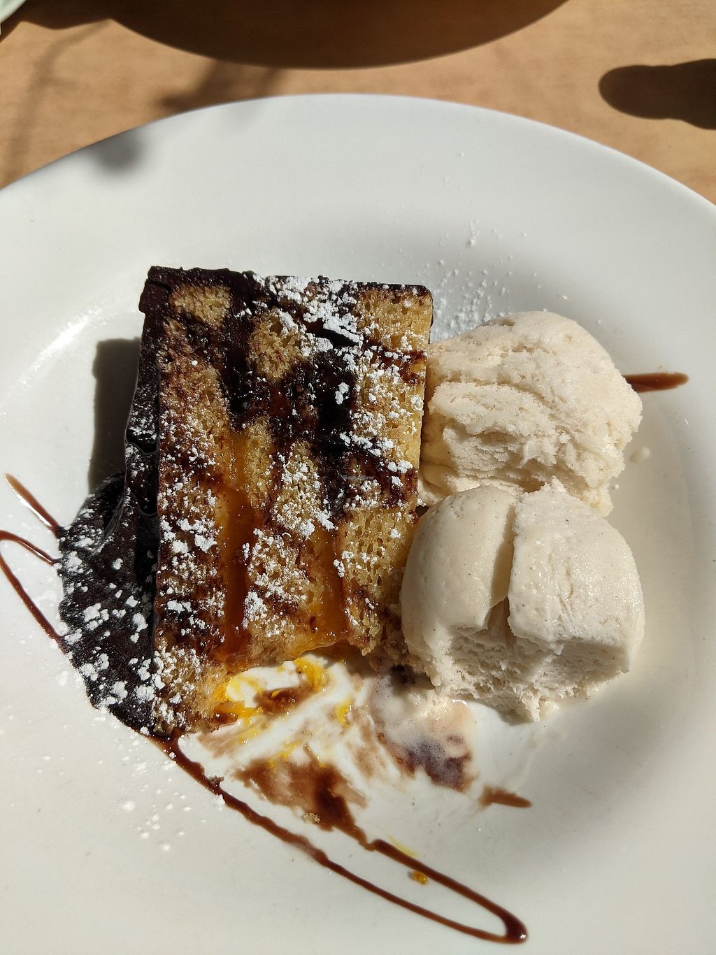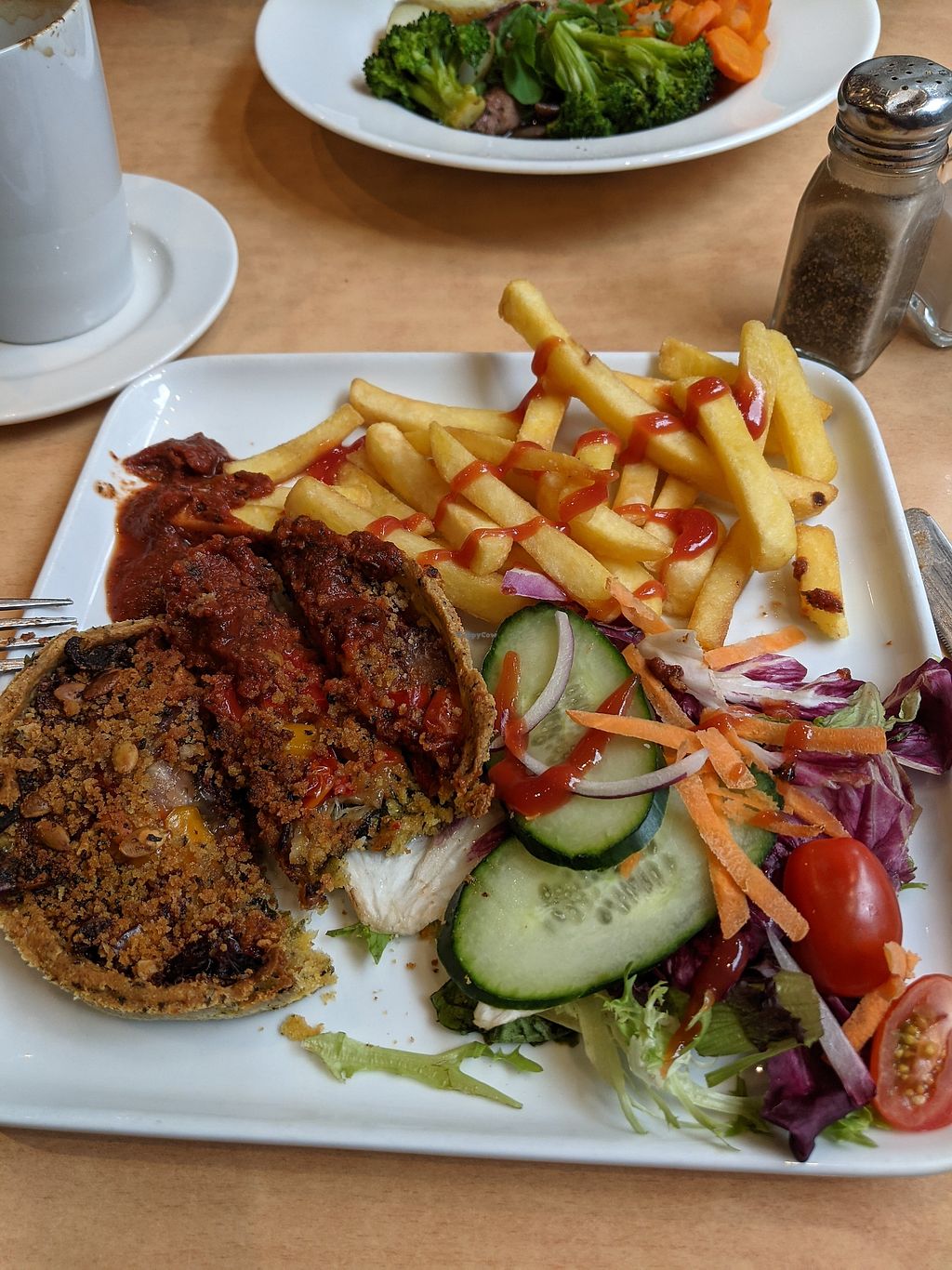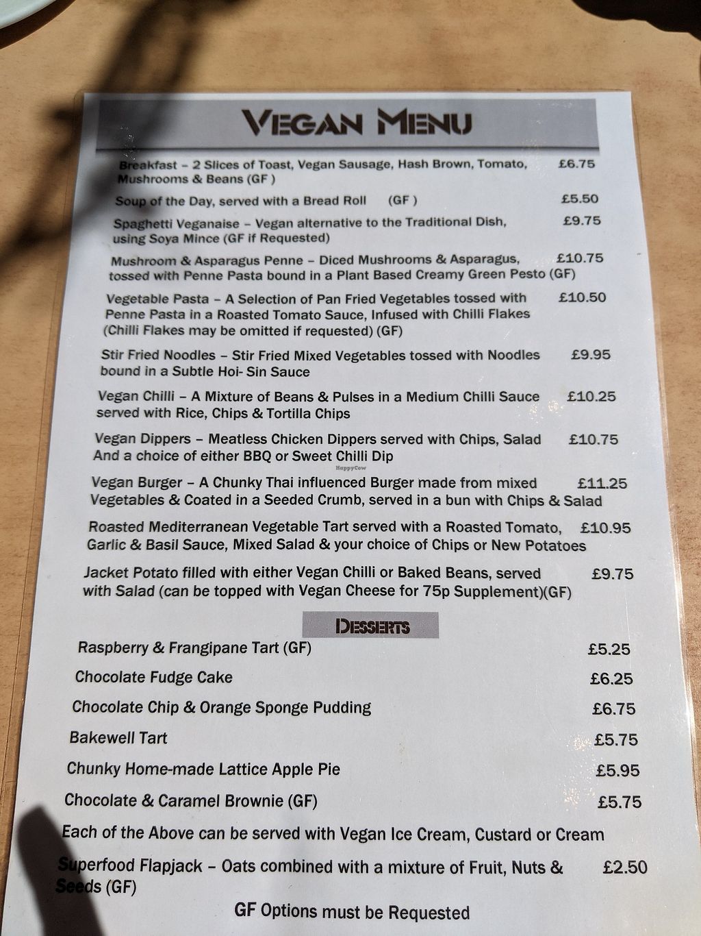 Read moreI was impressed by the stand alone vegan menu with a great choice of food. I had the Mediterranean tart with salad and chips. Although this was a huge portion, I couldn't turn up the chance of having a dessert too. Again a lot of choice. I had the chocolate chip and orange sponge cake with vegan ice cream. 🥳