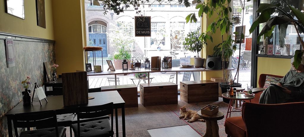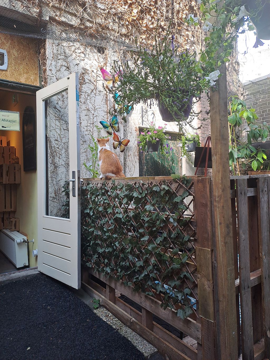 Super leuk kattencafé met een stadstuin, waar ook de lieve rustige katten in kunnen. Hele aardige bediening in dit café en vegan opties op de menukaart.