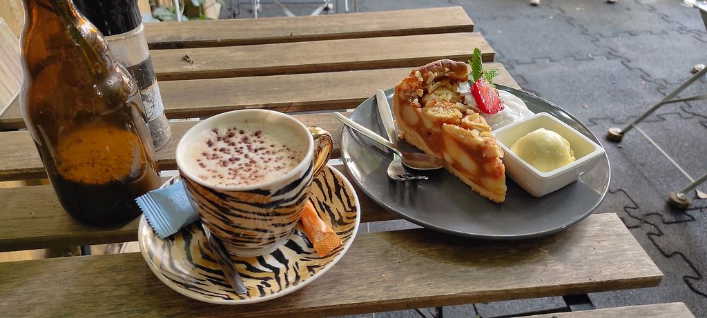 When it came to the sweets, the menu was a little bit confusing. The sweets were not labeled as vegan or not, though the apple-almond pie and the brownie both had a note of " +vegan ice cream and whipped cream", making me think these were both vegan. That was not the case as the apple-almond pie was the only vegan option. Tasted good though!